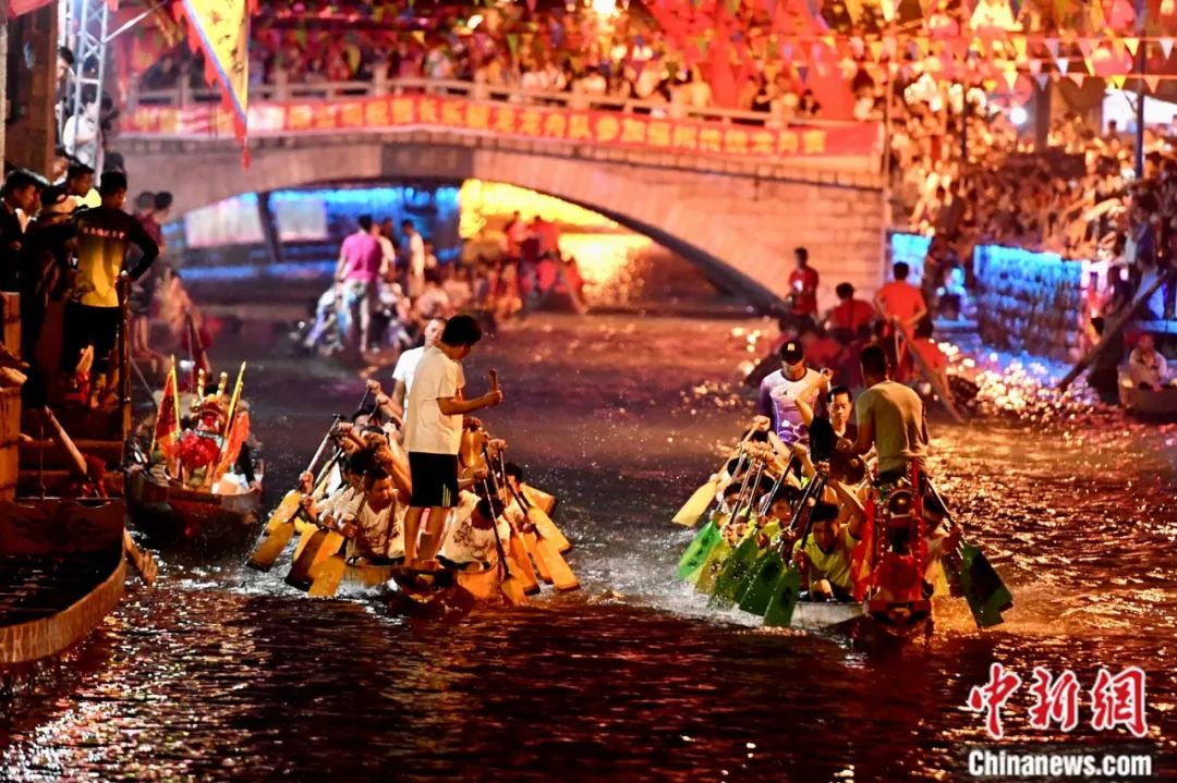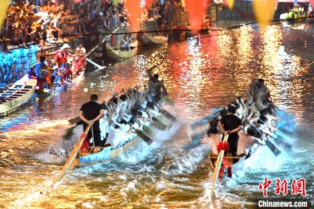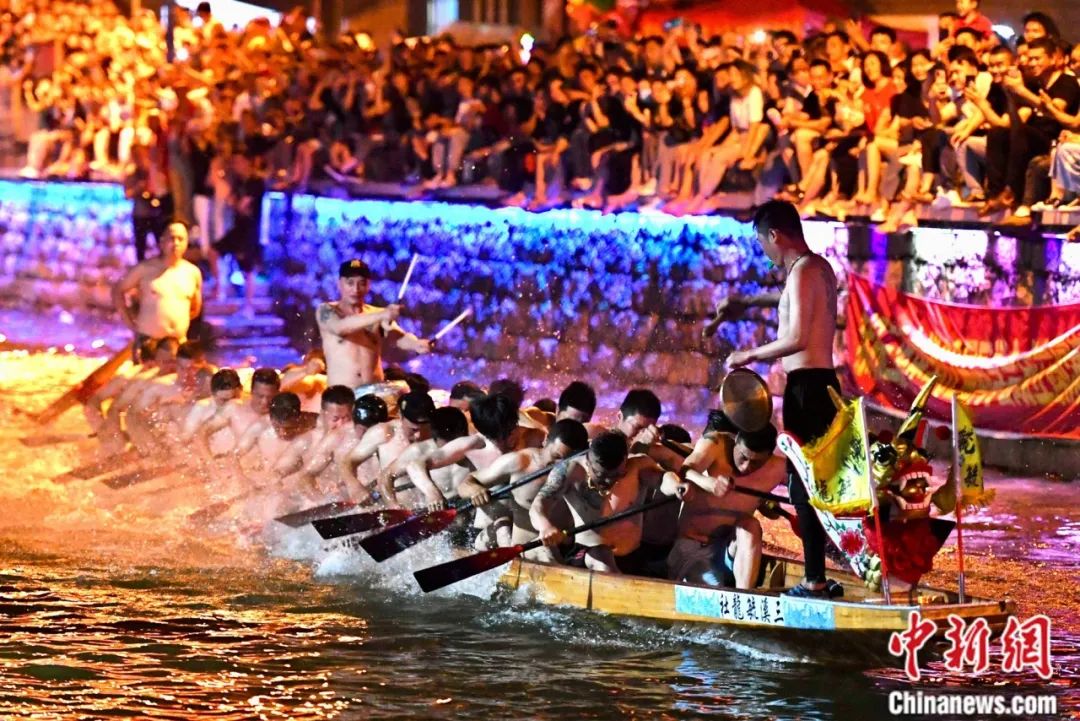當(dāng)?shù)卮迕衽e行夜賽龍舟活動