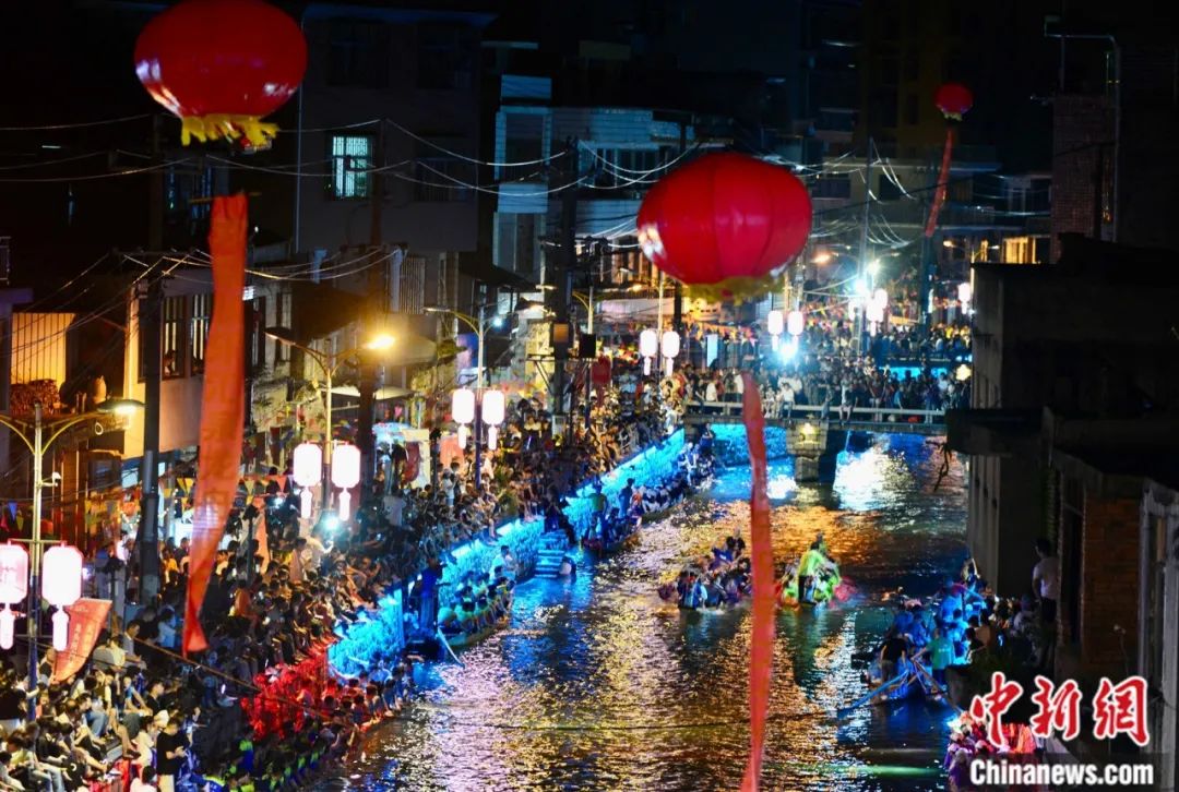 福州長樂三溪夜賽龍舟盛況。中新社記者 張斌 攝