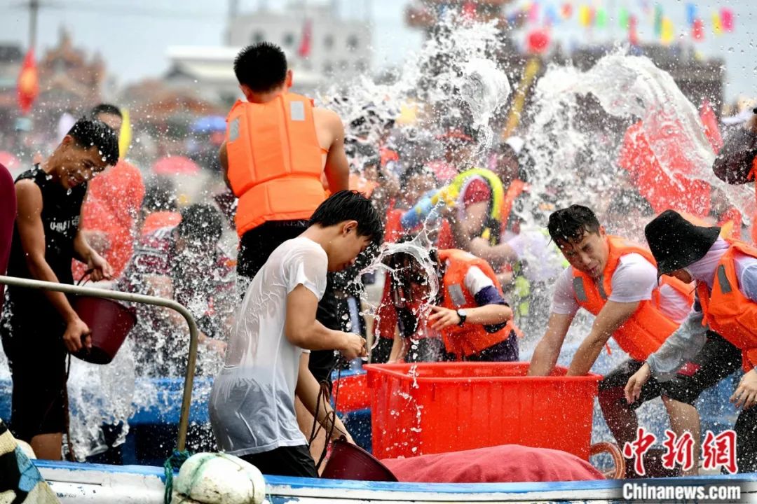 石獅蚶江海上潑水民俗。中新社記者 王東明 攝