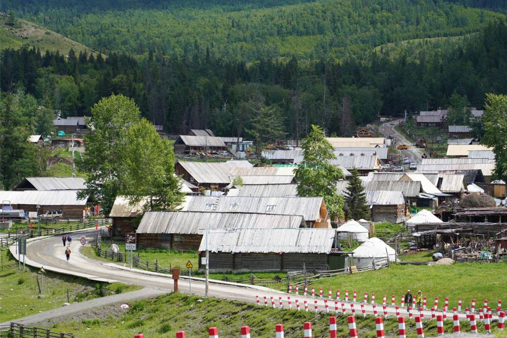 初夏午后,阿爾泰山蒼翠欲滴,牛羊成群。新疆哈巴河縣齊巴爾鎮(zhèn)吉林新村人頭攢動,來自五湖四海的游客走進(jìn)電視劇《我的阿勒泰》拍攝地,尋找“詩與遠(yuǎn)方”。