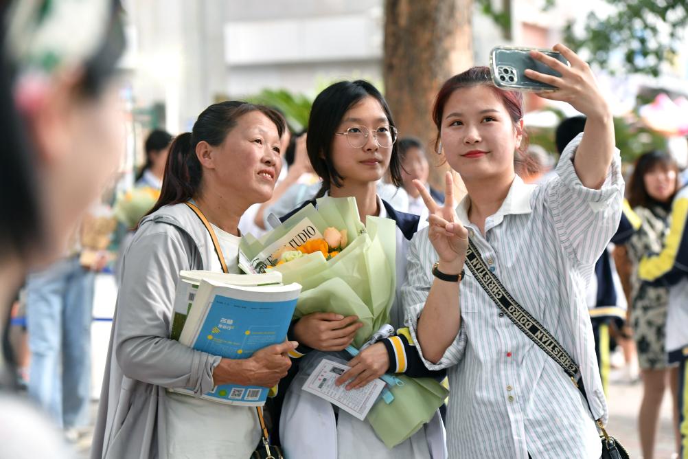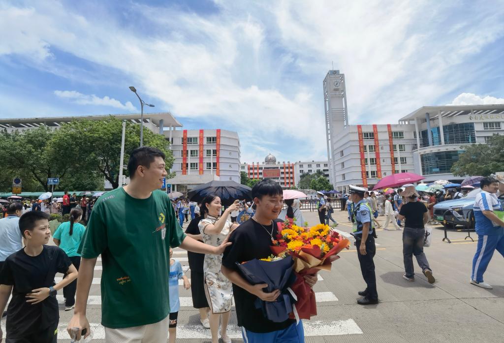 考生們從考場魚貫而出,家長們送上鮮花和擁抱,大家合影留念,記錄下青春歲月里的難忘時(shí)刻……