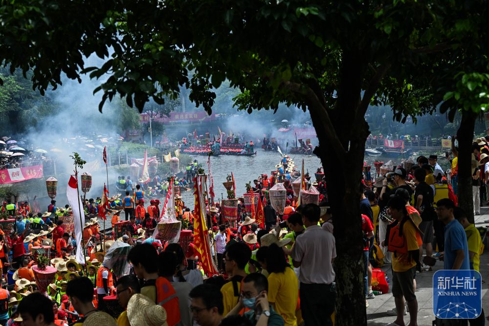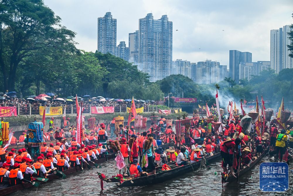 6月10日,國(guó)內(nèi)外游客匯聚在獵德觀賞“龍船景”?!褒埓啊笔菑V府地區(qū)水鄉(xiāng)在端午期間舉辦的一種民俗活動(dòng)。