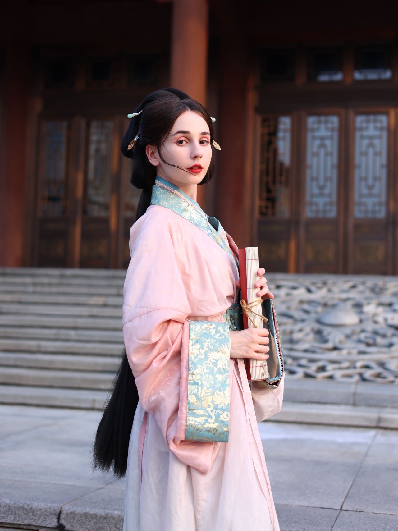 安心冉:我之前穿過(guò)明制漢服,還有唐制、宋制。我在杭州穿過(guò)、在北京穿過(guò),還有西安也穿過(guò)。我最喜歡的就是去西安的時(shí)候,我已經(jīng)去了兩次。每一次去西安,我都會(huì)穿漢服,請(qǐng)專業(yè)的人來(lái)幫我做頭發(fā),然后去城墻或者大唐不夜城拍照。上次去(參觀)兵馬俑的時(shí)候,我就穿了一套唐制的漢服去,在兵馬俑前面拍了一個(gè)視頻。我非常喜歡穿著古代的衣服去看古代的東西,我覺(jué)得最享受的就是這個(gè)。