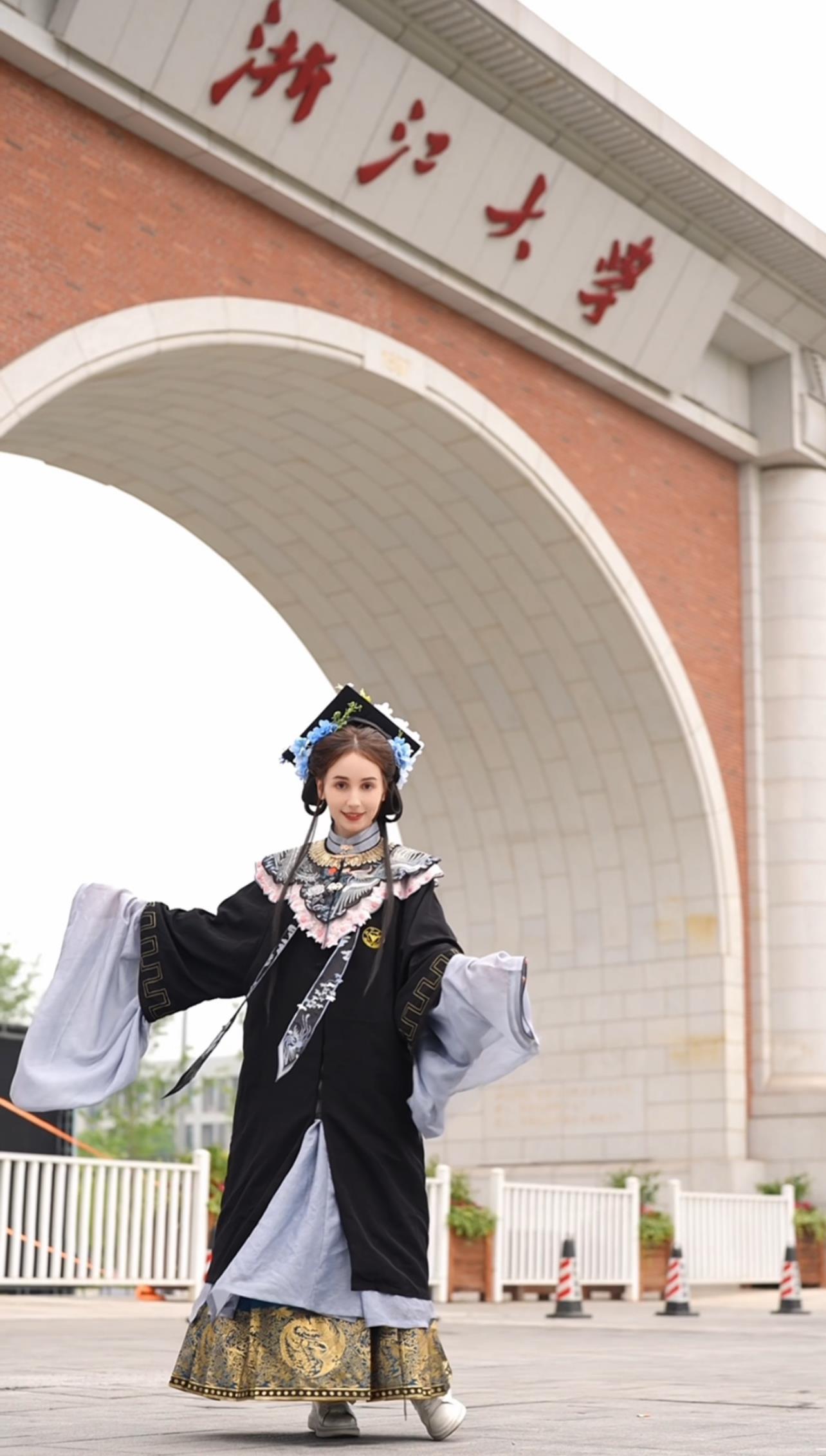 安心冉:所有的評(píng)論都在說(shuō)很漂亮呀或者很適合你,或者恭喜你畢業(yè)了,我就覺(jué)得很感動(dòng)。因?yàn)槲沂亲x元明清文學(xué),能穿明代的衣服畢業(yè),我很開心。我穿的那套學(xué)士服云肩的形狀就是四合如意,蘊(yùn)含了人生順?biāo)斓拿篮米8?。胸前的圖案是丹鳳朝陽(yáng),它寓意著賢德的人前途光明。我覺(jué)得中國(guó)的學(xué)士服比西方的學(xué)士服更有意義。