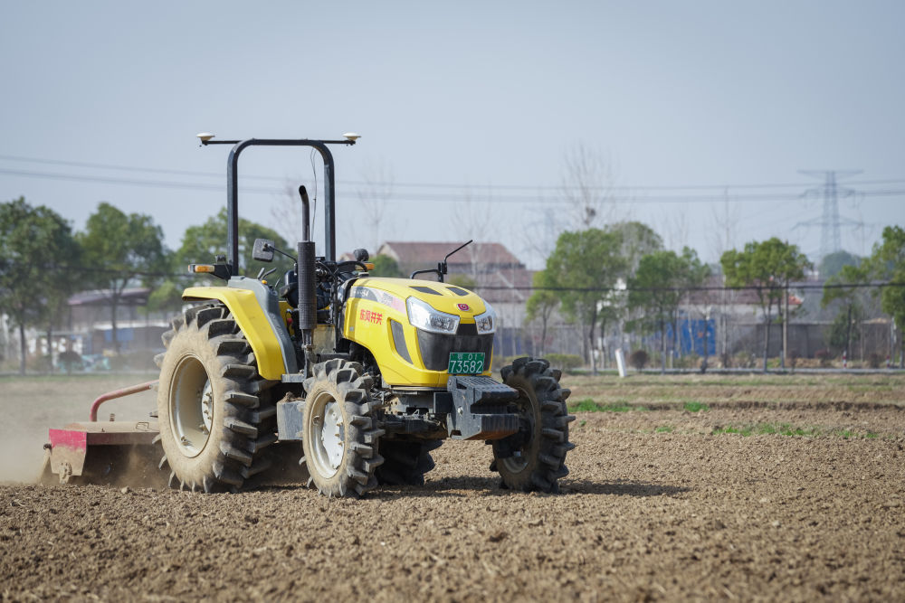 2023年3月15日,在湖北省武漢市黃陂區(qū)胡港灣村,武漢永旺農(nóng)產(chǎn)品專業(yè)合作社的無人駕駛旋耕機(jī)在運(yùn)作。 新華社記者 伍志尊 攝