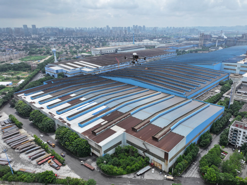 2024年6月13日,在湖南省湘潭市,無人機(jī)在湘潭鋼鐵集團(tuán)有限公司進(jìn)行智能巡檢(無人機(jī)照片)。無人機(jī)智能巡檢系統(tǒng)利用5G通信、北斗定位技術(shù)和“AI+機(jī)器視覺”等技術(shù),針對(duì)人員點(diǎn)檢不便的問題,對(duì)廠內(nèi)多場(chǎng)景進(jìn)行無人機(jī)定期智能巡檢,實(shí)現(xiàn)高爐測(cè)溫、電力絕緣端子巡檢等工作。 新華社記者 陳澤國(guó) 攝