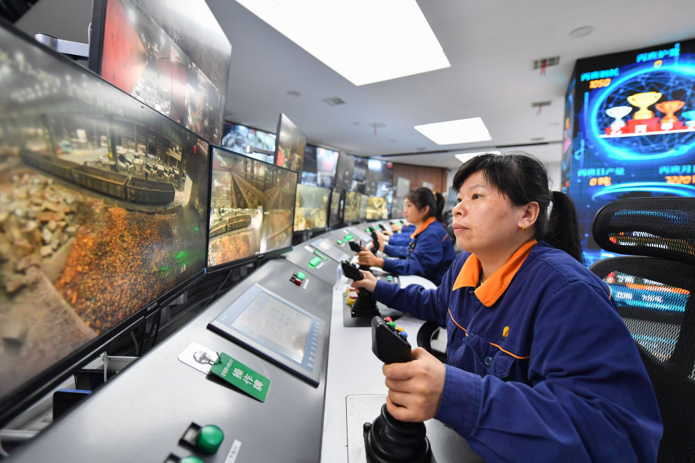 2024年6月13日,在位于湖南省湘潭市的湘潭鋼鐵集團(tuán)有限公司五米寬厚板廠智慧中心,工作人員在進(jìn)行遠(yuǎn)程行車操作。五米寬厚板廠智慧中心利用超融合、虛擬化、5G傳輸以及分布式計(jì)算和存儲(chǔ)等技術(shù),將五米板煉鋼、軋鋼和熱處理全工序的控制和二級(jí)、三級(jí)系統(tǒng)進(jìn)行整合,改善工人的工作環(huán)境,提高生產(chǎn)的自動(dòng)化程度和效率。 新華社記者 陳澤國(guó) 攝