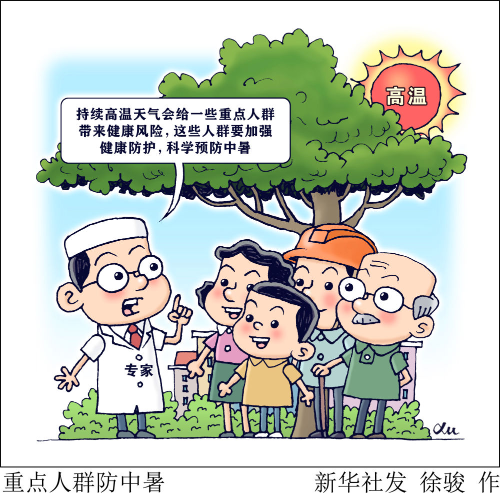 王荃特別提醒,老年人、兒童、孕產婦、慢性基礎性疾病患者以及戶外作業(yè)人員等人群,更容易發(fā)生中暑,需格外加強自身健康防護。