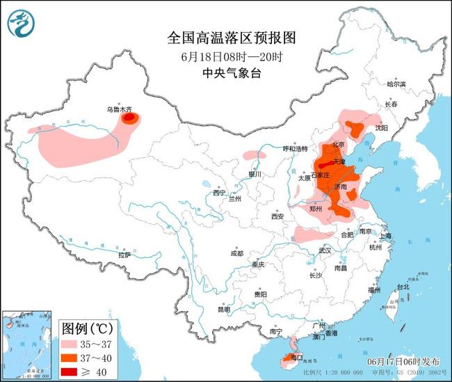 中央氣象臺6月17日06時繼續(xù)發(fā)布高溫黃色預警:預計17日白天,內蒙古西北部、新疆南疆盆地和東部、河北中南部和東北部、北京、天津、遼寧西部、山東中西部、河南東部和南部、安徽北部、湖北東北部、海南島大部等地有35~36℃高溫天氣,其中,新疆南疆盆地、河北中南部、北京南部、遼寧西南部、山東北部等地部分地區(qū)最高氣溫37~39℃,新疆吐魯番盆地等地局地可達40℃以上。