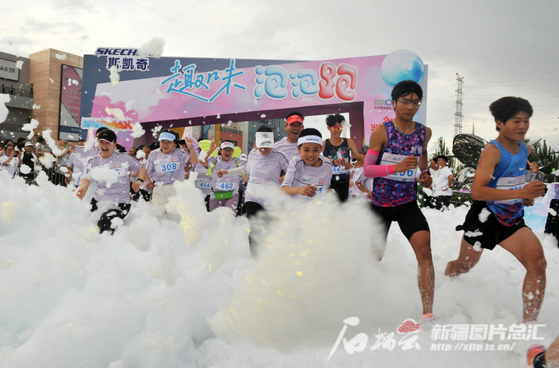 △6月14日,一場(chǎng)趣味“泡泡跑”活動(dòng)在烏魯木齊杉杉奧特萊斯廣場(chǎng)舉辦,600多名市民參加了這場(chǎng)別開(kāi)生面的5公里“泡泡跑”。與傳統(tǒng)的跑步比賽不同,“泡泡跑”更具趣味性,參與者可以邊跑邊玩,盡情享受一場(chǎng)清涼的泡泡盛宴。石榴云/新疆日?qǐng)?bào)記者 秦梅花攝