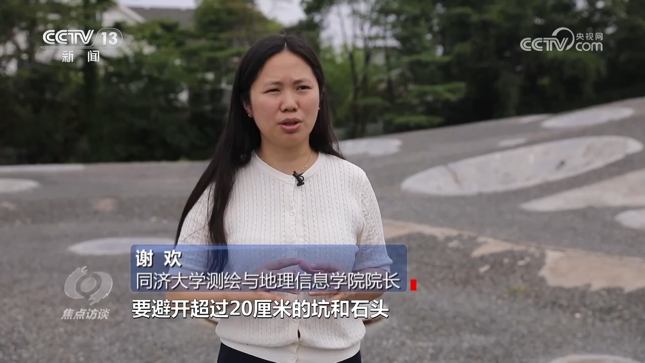 同濟(jì)大學(xué)測繪與地理信息學(xué)院院長謝歡:“對于著陸避障來說,主要在乎的是地面上是不是平坦。要避開超過20厘米的坑和石頭,所以我們在場地里面仿真了不同的場景,大大小小的坑和不同大小的石塊,盡可能還原在月球表面上可能會威脅安全著陸的場景?!?/p>