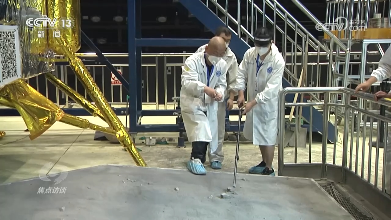 中國航天科技集團(tuán)史偉:“落了月以后,首先相機(jī)要對整個采樣區(qū)進(jìn)行成像。采樣區(qū)大致的起伏程度也好,有沒有石頭也好,避開風(fēng)險區(qū)域,所以我們首先要在內(nèi)場把整個月面的環(huán)境真實(shí)地還原回來。”