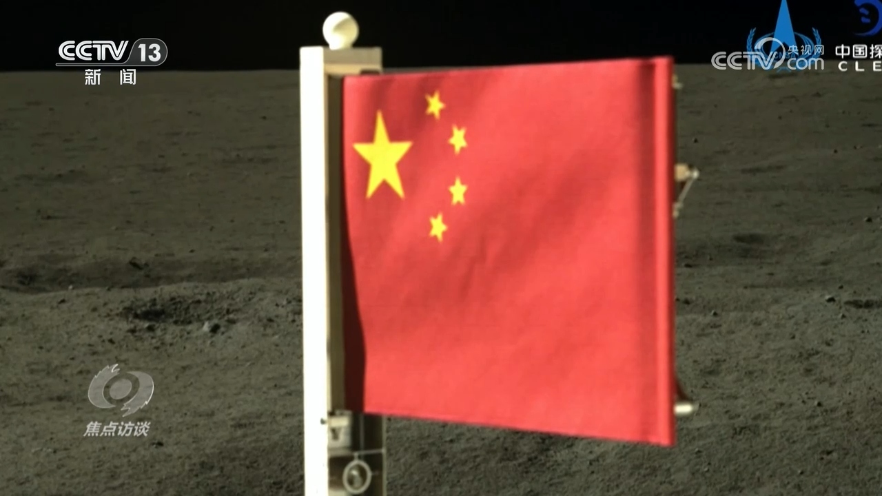 中國航天科技集團(tuán)賈曉宇:“最開始選采樣點(diǎn)只是根據(jù)表面看到的圖形選出來的,我們會根據(jù)翻出來的樣品動態(tài)調(diào)整采樣點(diǎn)的位置,‘中’字的斜收筆和‘中’字的頭部其實(shí)就是這樣產(chǎn)生的。本來我們可能除了‘中’字之外還會多鏟幾鏟,但是最后發(fā)現(xiàn)‘中’字的最后一筆形成以后,正好這個樣品容器也幾乎要滿了。各種意外催成了‘中’字的產(chǎn)生,可能注定中國要在月球上留下自己的印記。”