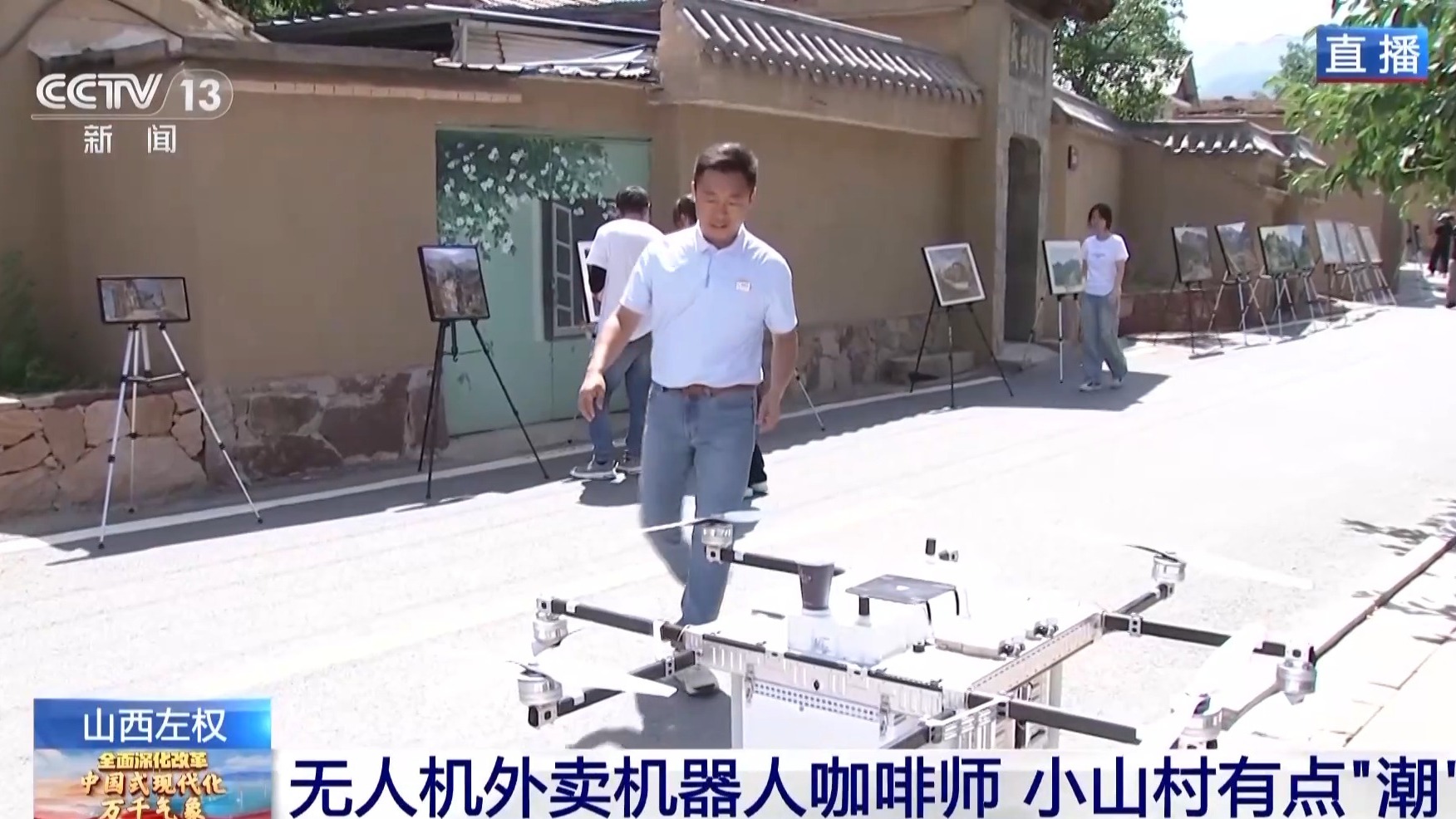 隨著前來(lái)寫(xiě)生的人越來(lái)越多,澤城村的“賣(mài)點(diǎn)”逐漸多了起來(lái)。小小的一杯咖啡在城市里不足為奇,但是在這里我要通過(guò)這杯咖啡介紹兩個(gè)特點(diǎn)。第一點(diǎn),這杯咖啡不是我從店里自取,也不是外賣(mài)小哥送過(guò)來(lái)的,而是在直播前我通過(guò)由村民操控的這架無(wú)人機(jī)收取的,這個(gè)無(wú)人機(jī)可攜帶10公斤貨物送達(dá)10公里外的顧客手中。但是無(wú)人機(jī)外賣(mài)只是它其中一項(xiàng)業(yè)務(wù),如果村里急需醫(yī)療物資或者在災(zāi)害環(huán)境中運(yùn)送緊急物資,它都是一把好手。