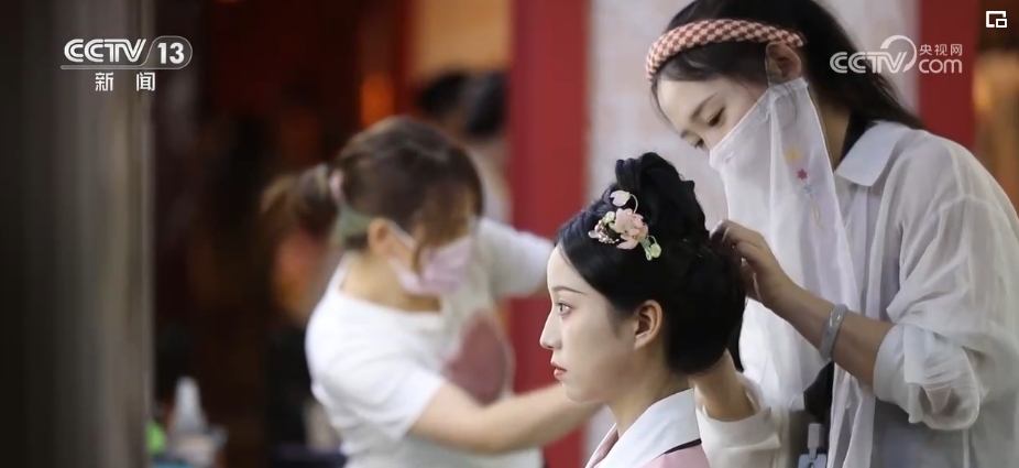 除了妝造師,國風服飾的火熱還催生了像跟拍師、簪花制作師等新興職業(yè)。古城里,登記在冊的攝影師從之前的幾十名增加到了800多名。