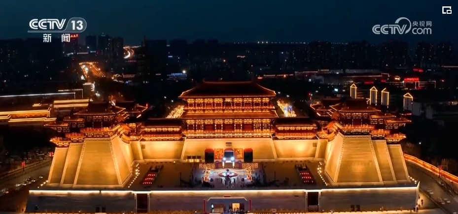 著華服、綰青絲、點朱丹……夜幕降臨,新潭遺址之上建起的洛邑古城內人頭攢動。精心妝造過的古裝佳人或倚窗凝思,或憑欄望月,置身其中,仿佛穿越時空,美不勝收。