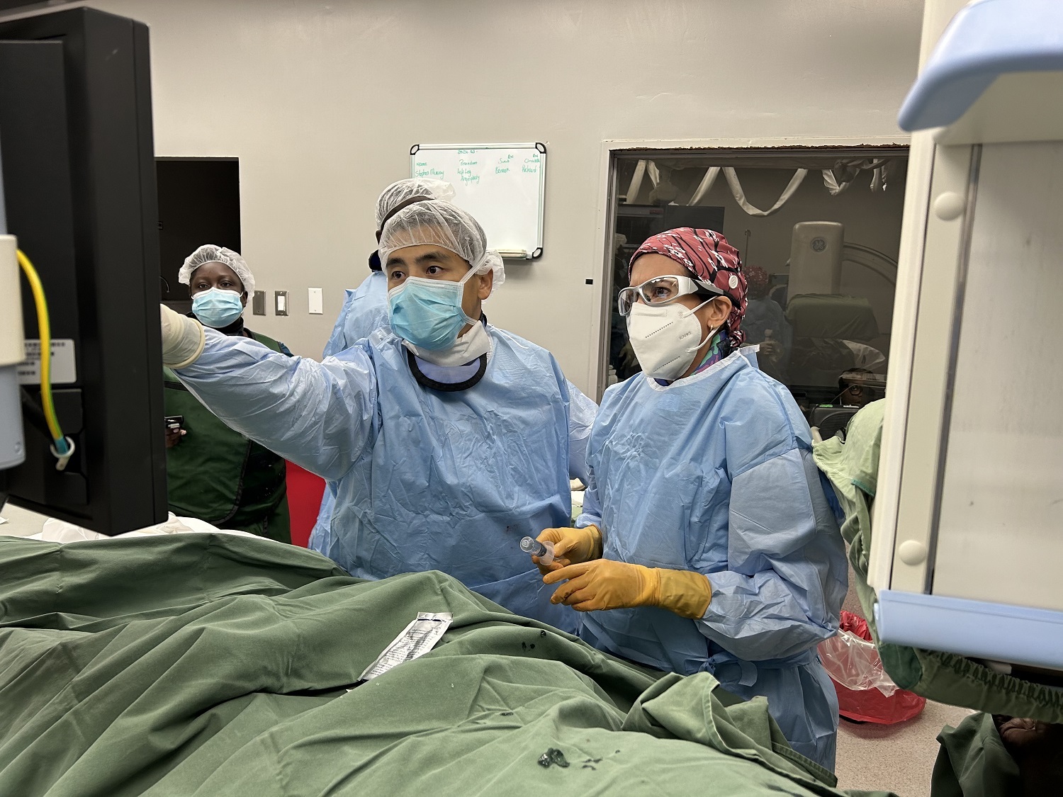 劉麗萍(左一)開展巴巴多斯第一例超聲造影技術(shù)