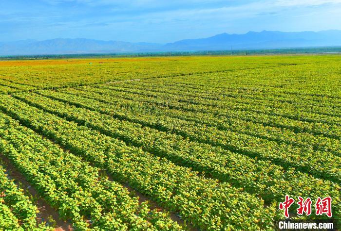 7月2日,走進新疆鐵門關市二十一團,一眼望不到邊的向日葵正大面積綻放,構成一幅美麗的壯觀畫卷。白克斌 攝