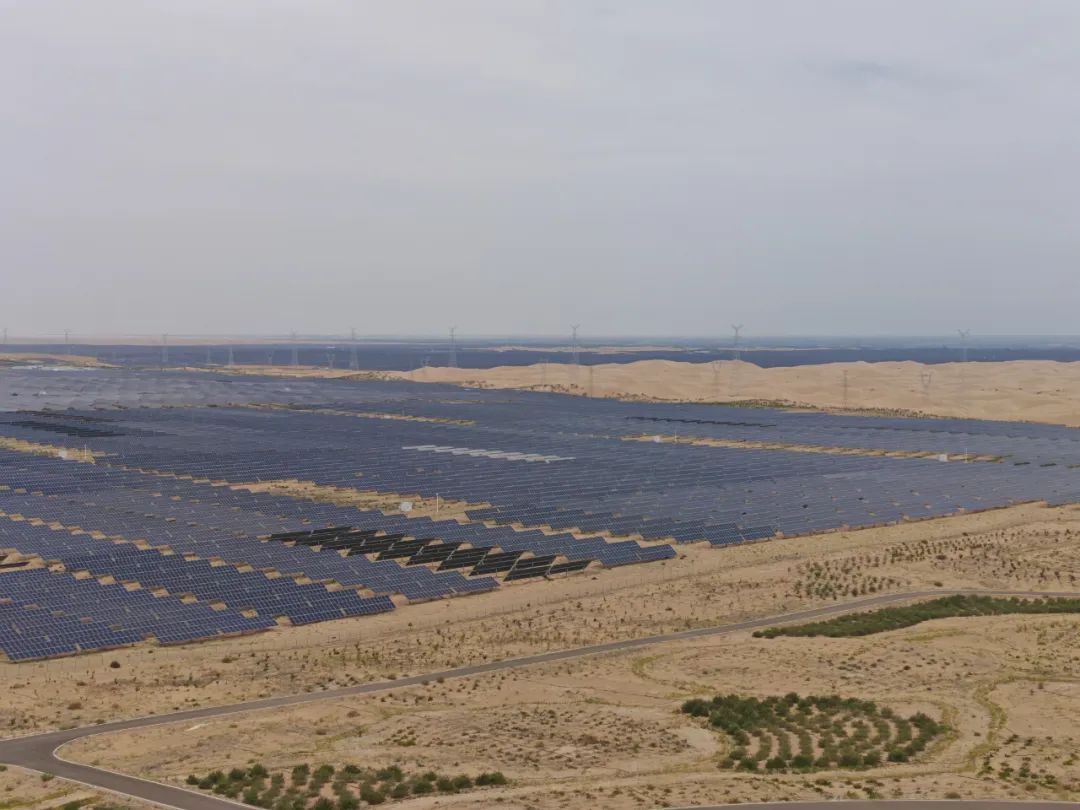 從高空俯瞰,位于鄂爾多斯的達(dá)拉特光伏發(fā)電應(yīng)用領(lǐng)跑基地,像一片深藍(lán)色的海面,覆蓋于庫(kù)布其沙漠上。每年,這個(gè)項(xiàng)目可以發(fā)“綠電”20億度,節(jié)約標(biāo)煤68萬(wàn)噸,減排二氧化碳約165萬(wàn)噸。