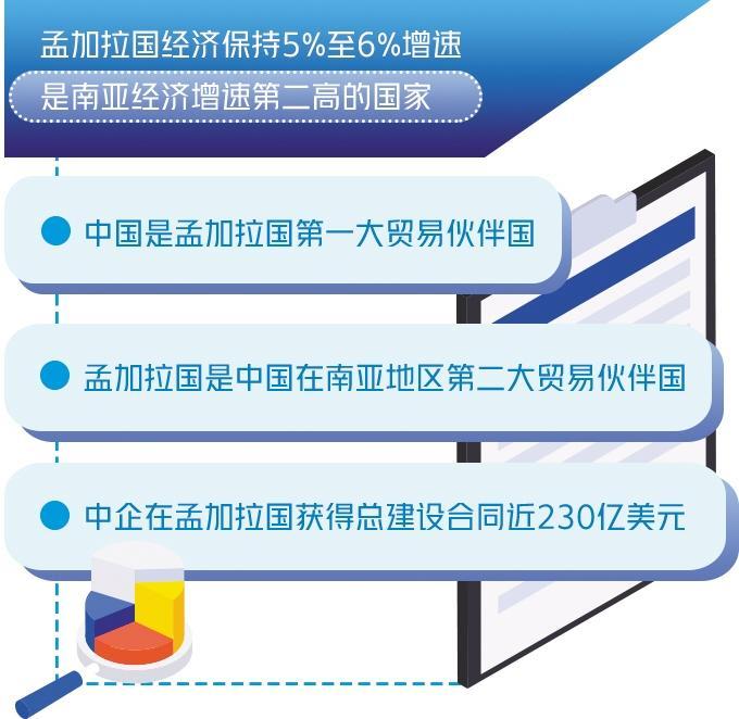 近年來,孟加拉國經(jīng)濟穩(wěn)步增長,保持5%至6%的經(jīng)濟增速,是南亞經(jīng)濟增速第二高的國家。孟加拉國推行私有化政策,改善投資環(huán)境,大力吸引外商投資,積極創(chuàng)建出口加工區(qū)。中國是孟加拉國第一大貿(mào)易伙伴國,孟加拉國是中國在南亞地區(qū)第二大貿(mào)易伙伴國。兩國在紡織服裝、路橋建設(shè)、能源、農(nóng)業(yè)等領(lǐng)域合作基礎(chǔ)深厚,在基建設(shè)施、食品加工、產(chǎn)業(yè)園等領(lǐng)域合作潛力巨大,雙邊經(jīng)貿(mào)關(guān)系展現(xiàn)出強勁的發(fā)展勢頭。