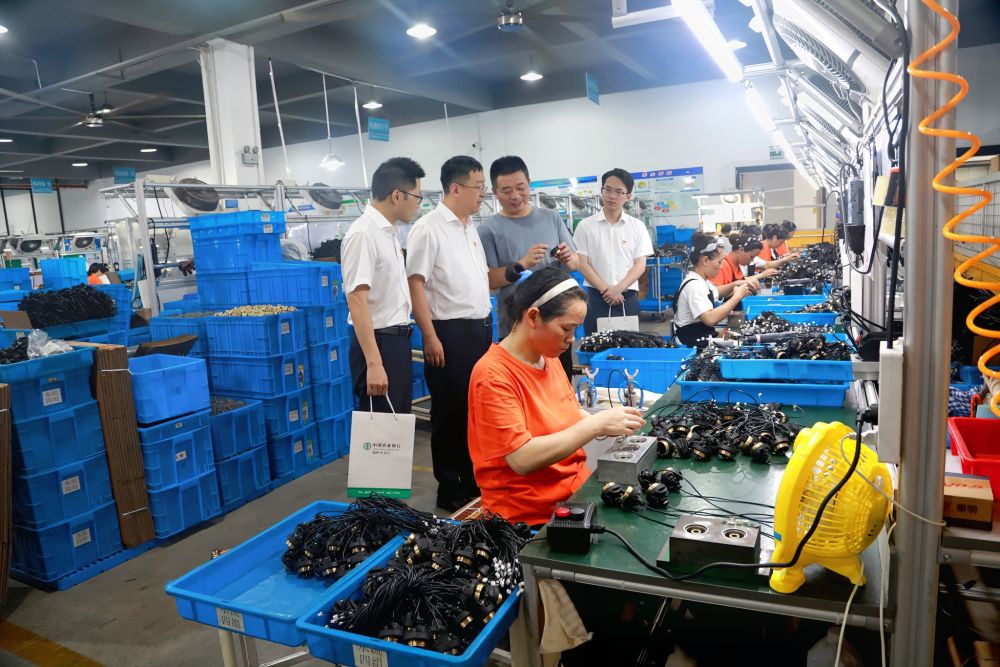 7月12日,在位于浙江溫嶺的愛科賽智能科技公司,農(nóng)行溫嶺支行工作人員開展金融問需服務(wù)。新華社發(fā)(程蘊 攝)