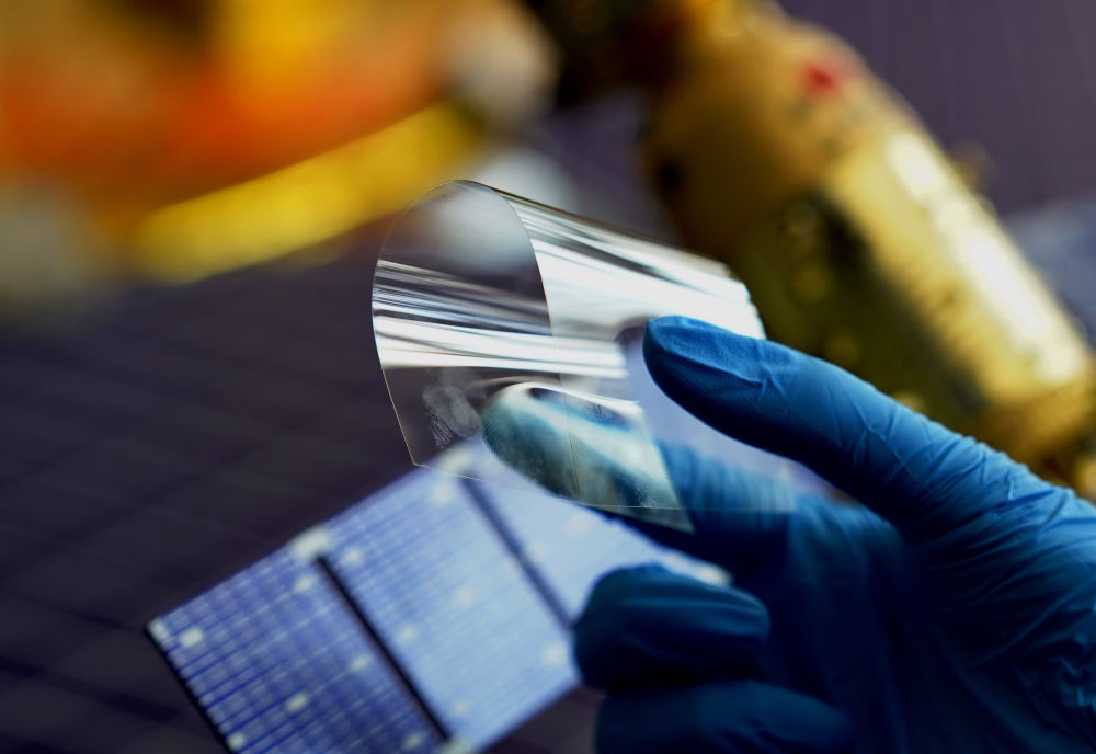 4月12日,河北省秦皇島經(jīng)濟技術開發(fā)區(qū)一家特種玻璃企業(yè)的工人在展示一款用于航天領域的玻璃產(chǎn)品。新華社記者 楊世堯 攝