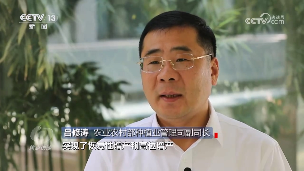 農(nóng)業(yè)農(nóng)村部種植業(yè)管理司副司長呂修濤:“今年的“三夏”生產(chǎn)可以用“過五關斬六將”來形容,克服了一系列風險和挑戰(zhàn),實現(xiàn)了恢復性增產(chǎn)和高位增產(chǎn),這是今年夏糧一個非常突出的成果?!?/p>