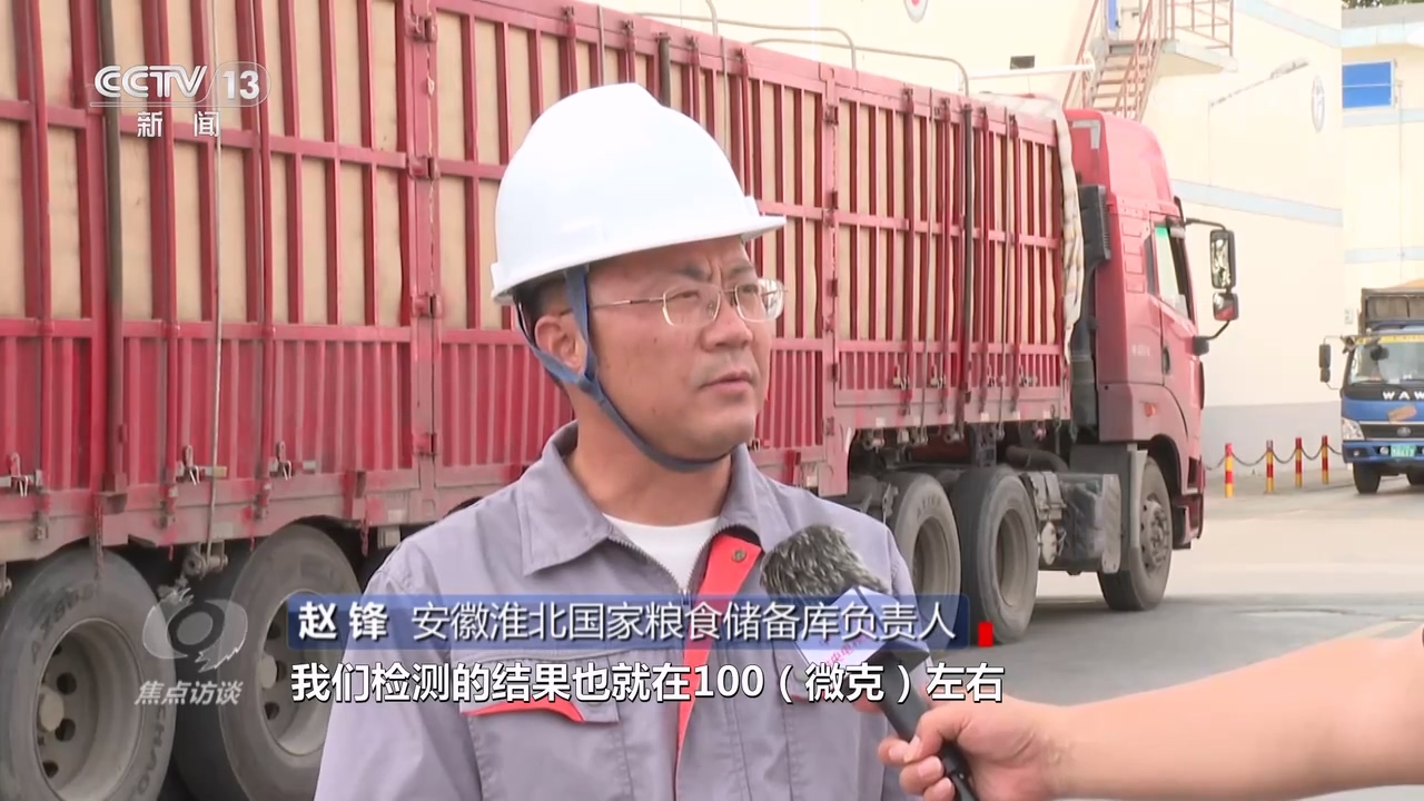 安徽淮北國家糧食儲備庫負責人趙鋒:“嘔吐毒素標準是每一千克小于1000微克,我們檢測的結果也就在100微克左右,有的檢不出來。玉米赤霉烯酮(標準)是每一千克小于60微克,檢測結果基本上在10微克以內,小麥的質量非常好?!?/p>
