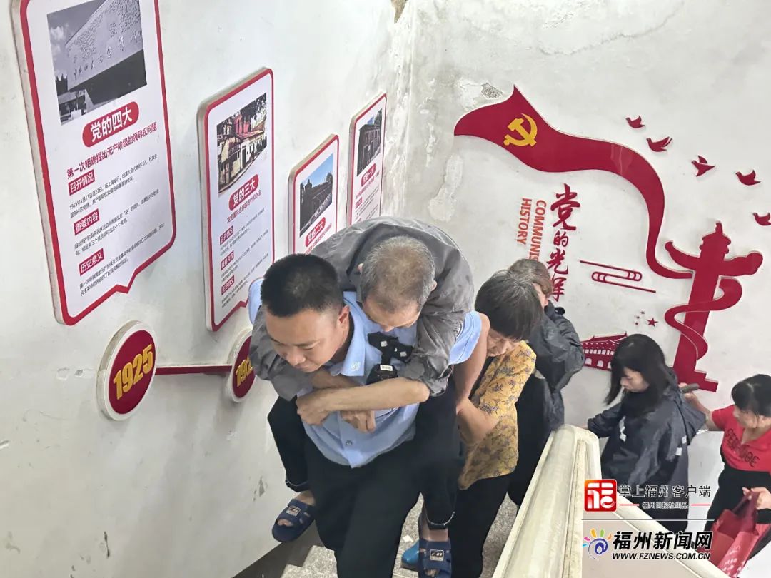 小心翼翼地將行走不便的陳奶奶抱到輪椅上