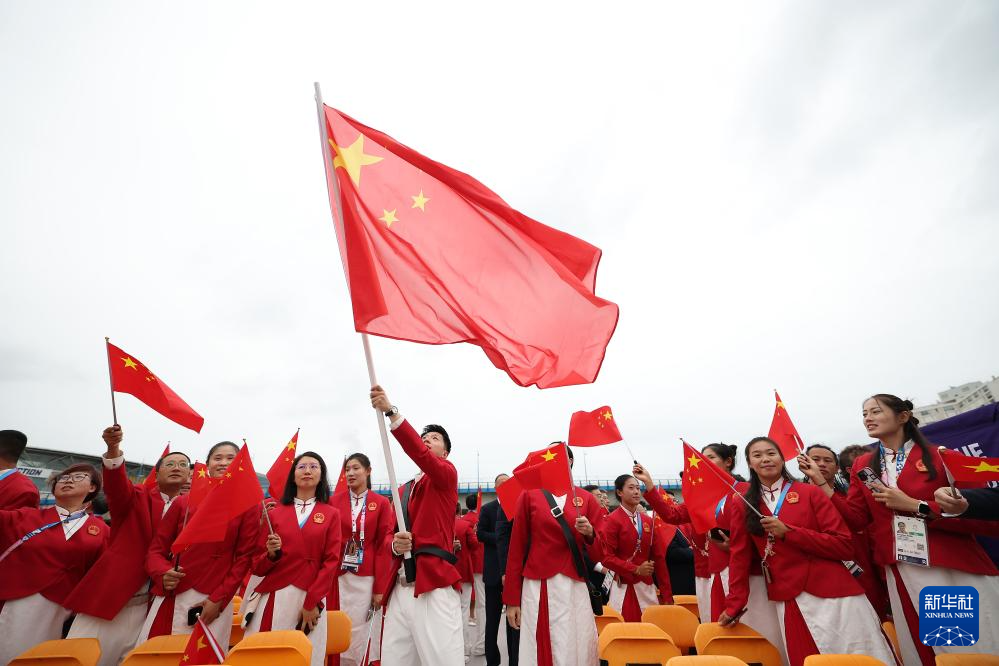 7月26日,阿根廷體育代表團成員在開幕式上。新華社記者 王東震 攝