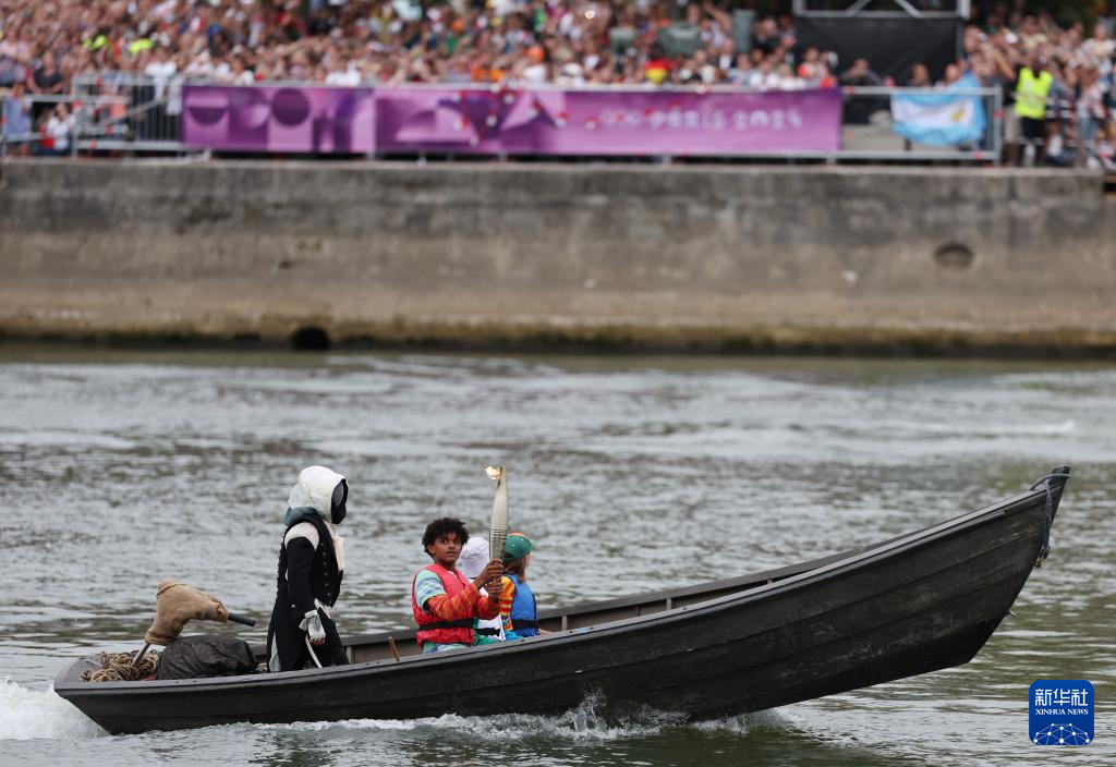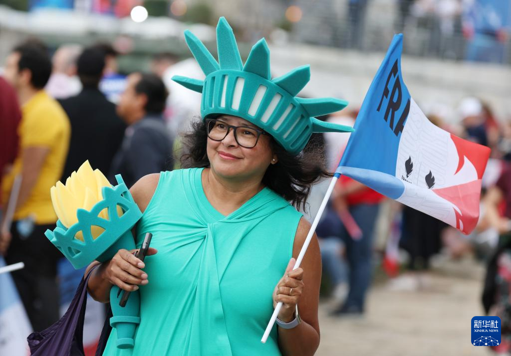 7月26日,觀眾在塞納河邊觀看開幕式。新華社記者 任正來 攝