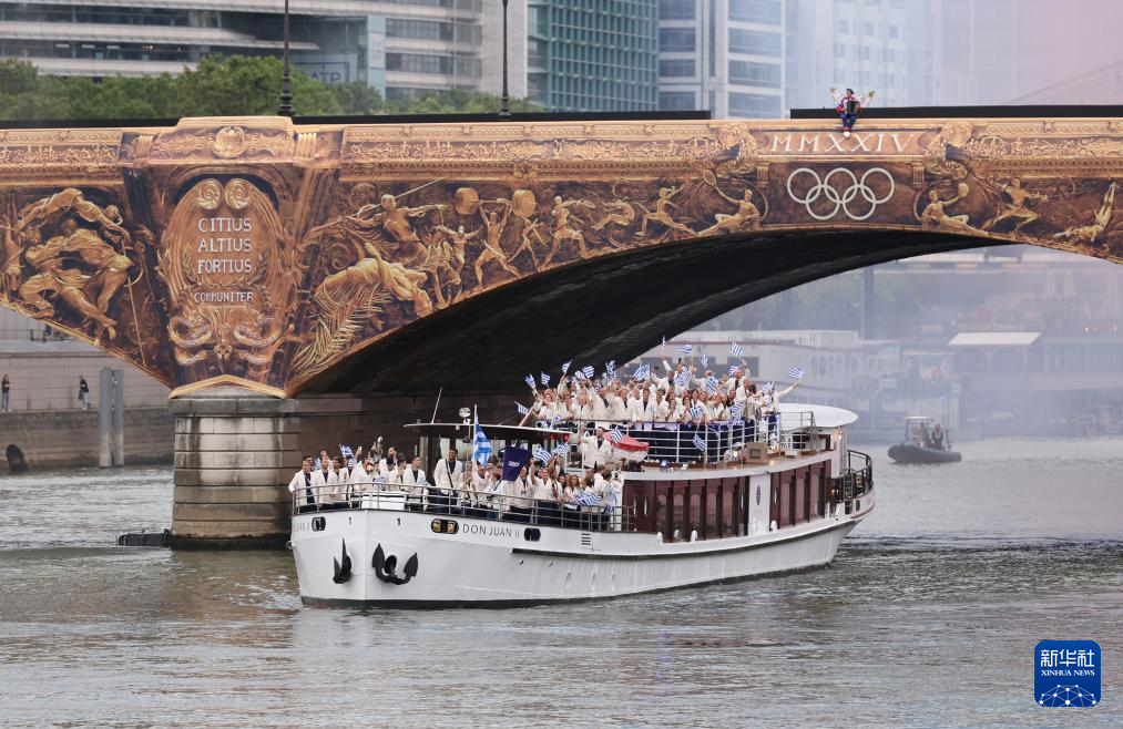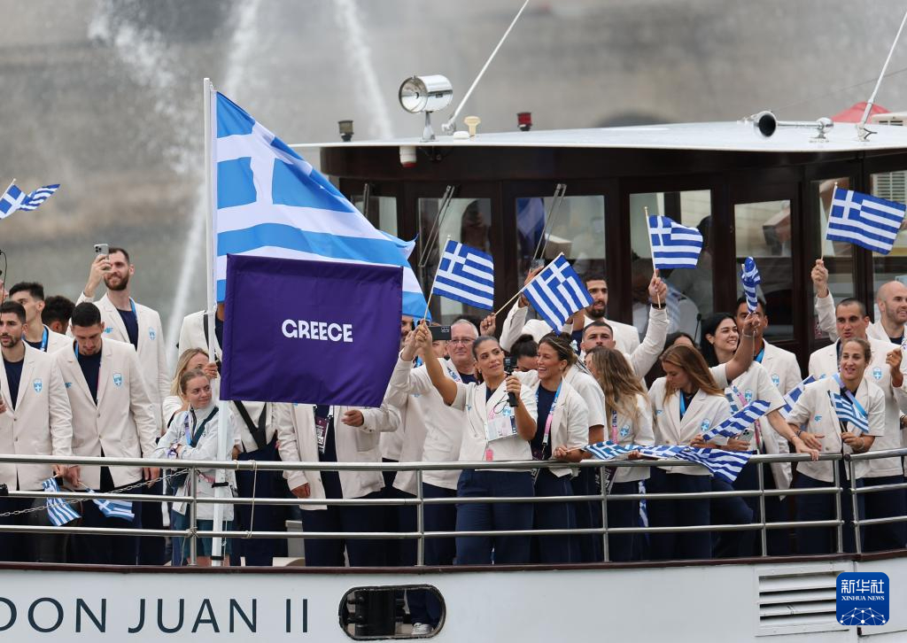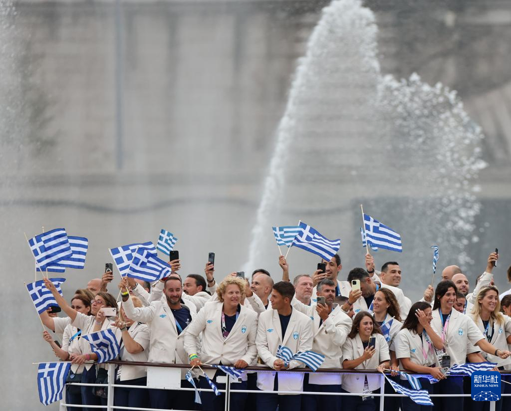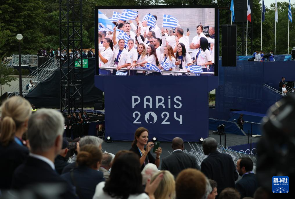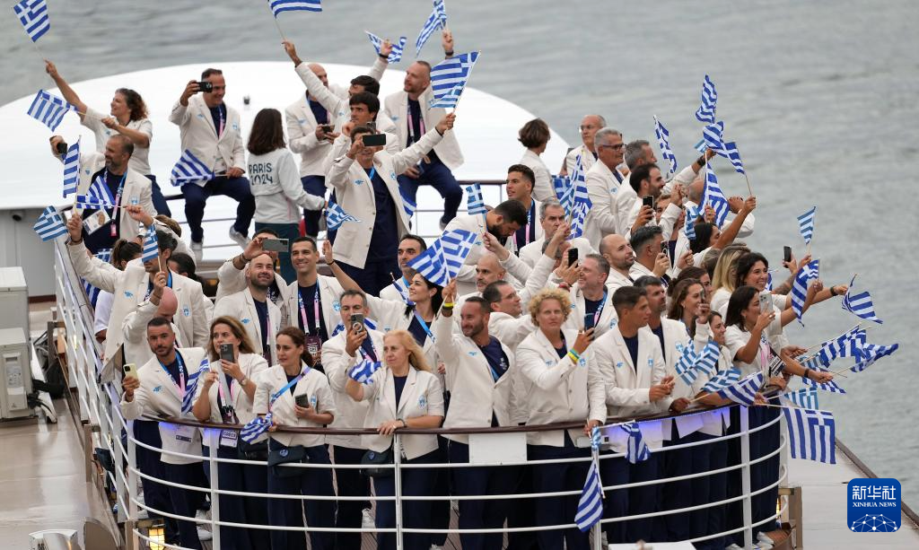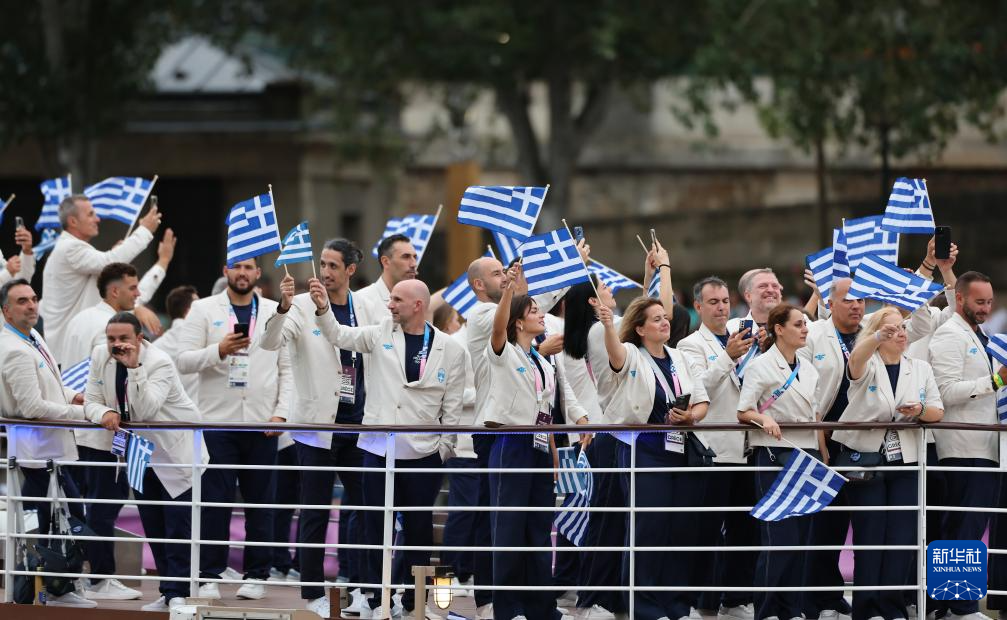 7月26日,希臘體育代表團在開幕式上。新華社記者 張玉薇 攝