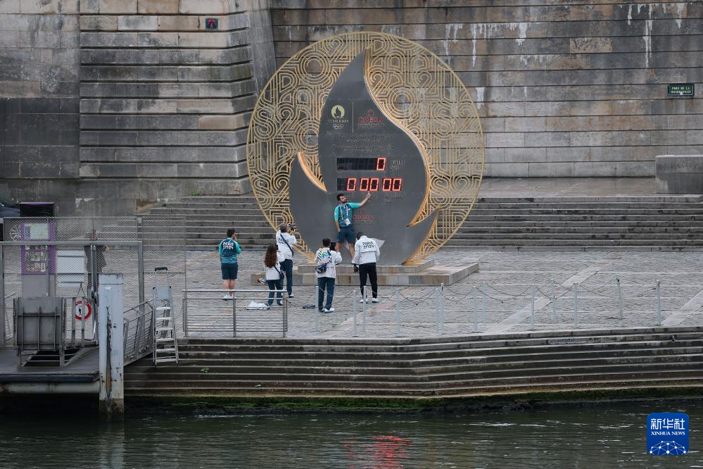 7月26日,志愿者與奧運倒計時牌合影。新華社記者 李明 攝