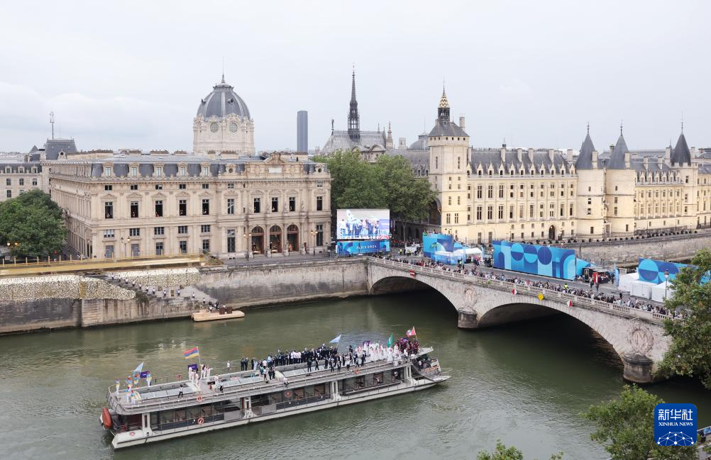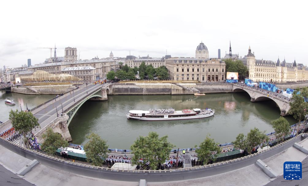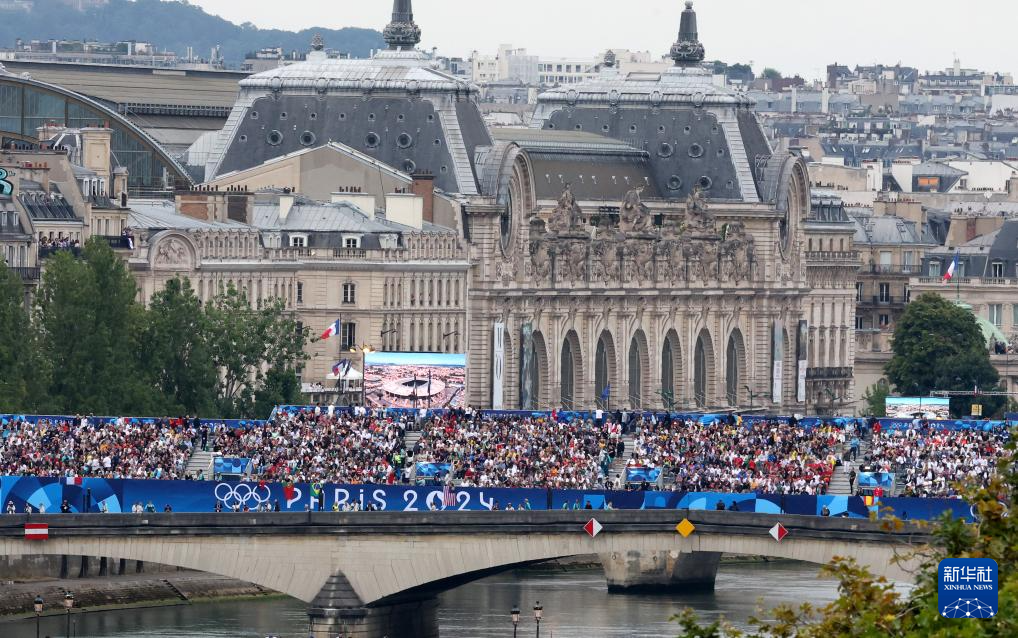 7月26日,觀眾在塞納河畔觀看開幕式。新華社記者 費茂華 攝