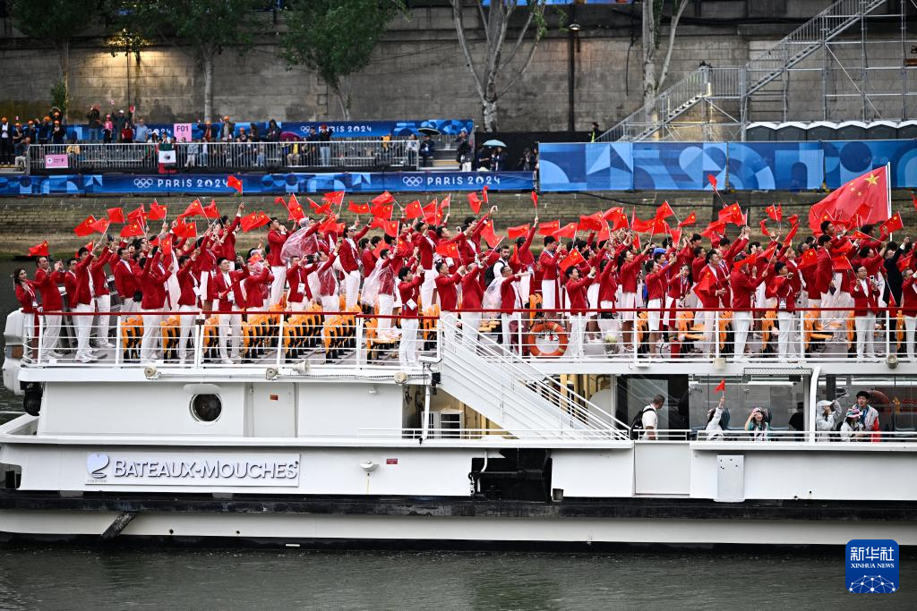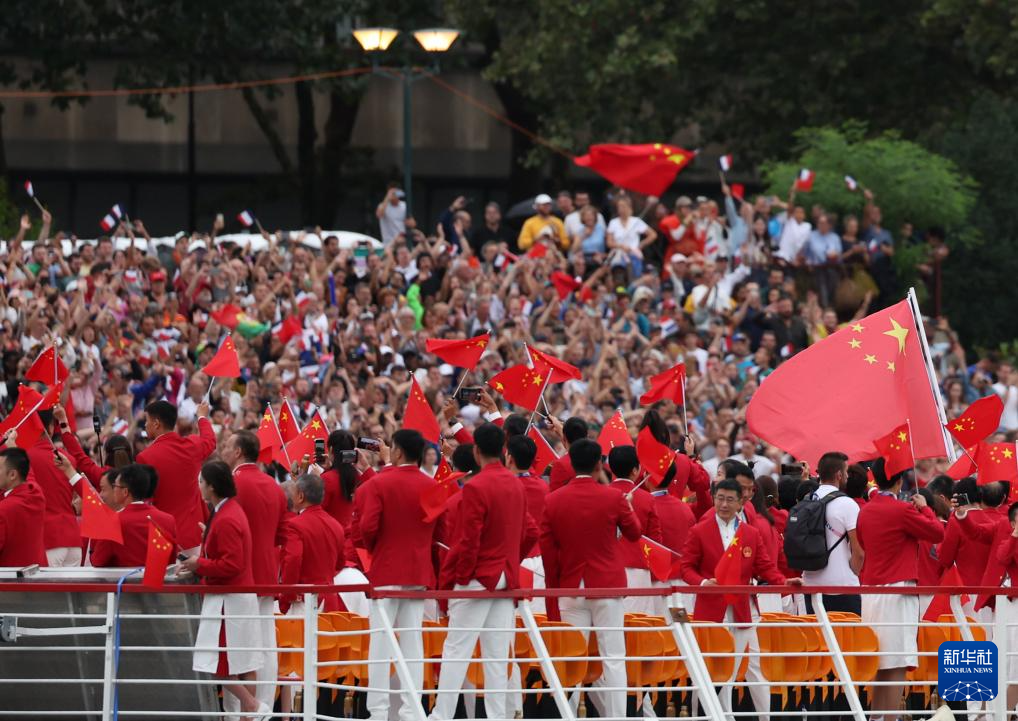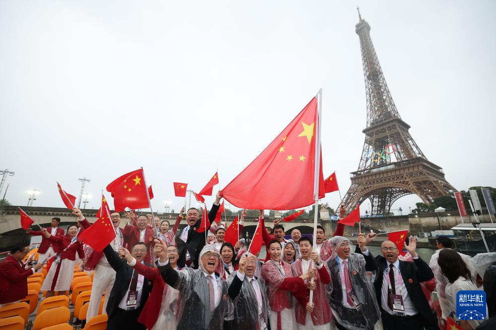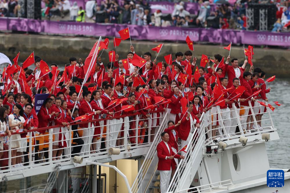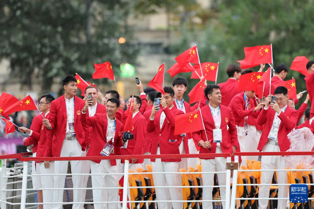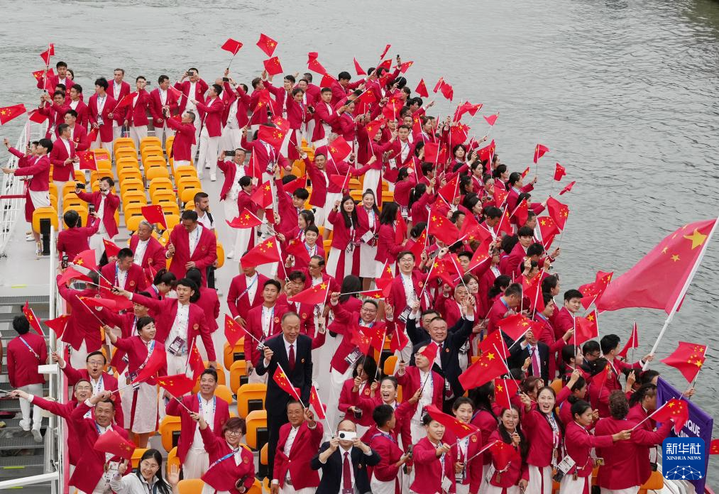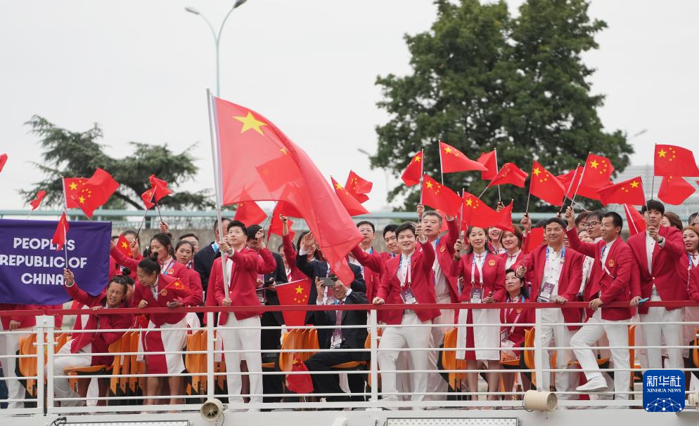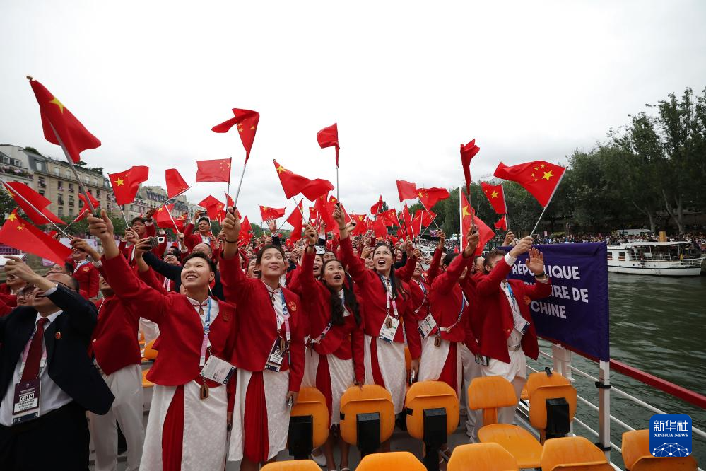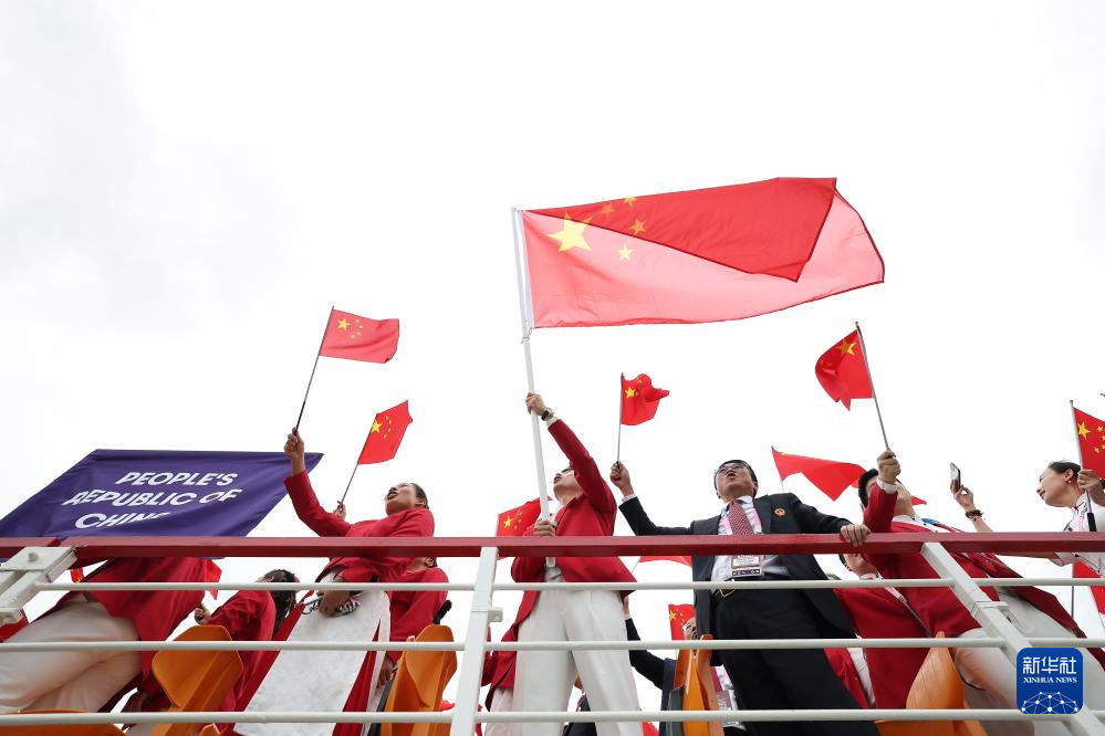 7月26日,中國體育代表團成員在開幕式上。新華社記者 萬象 攝