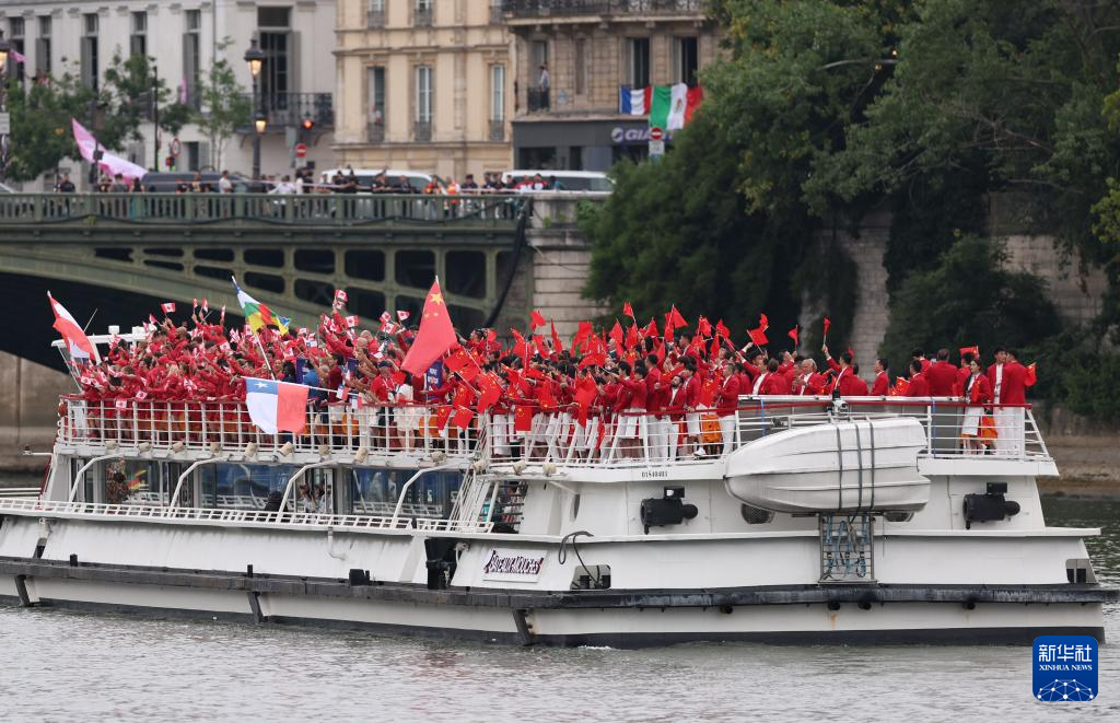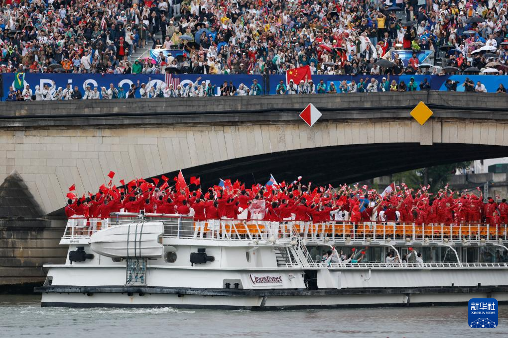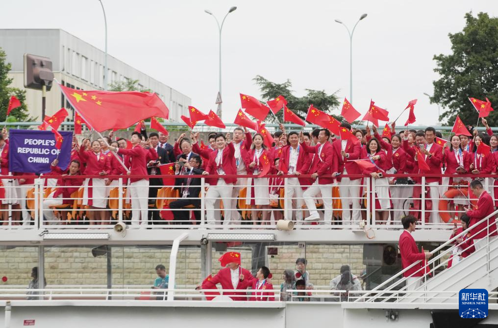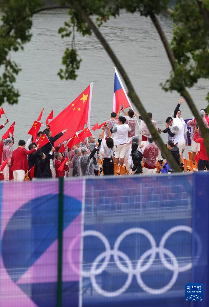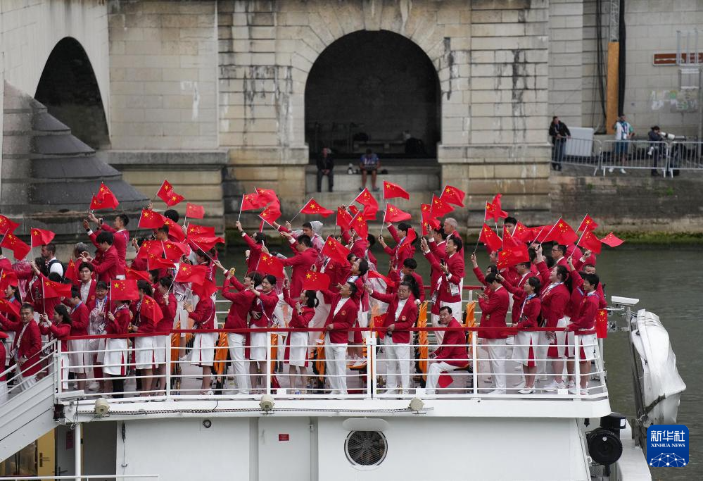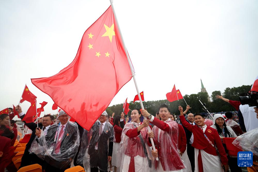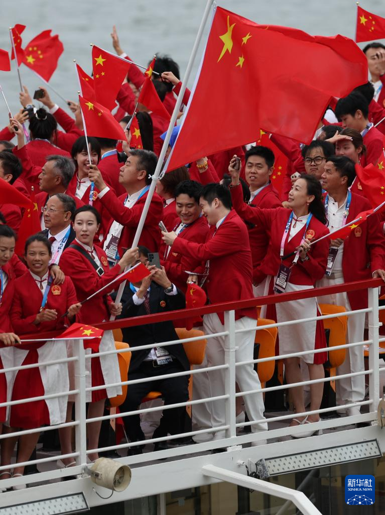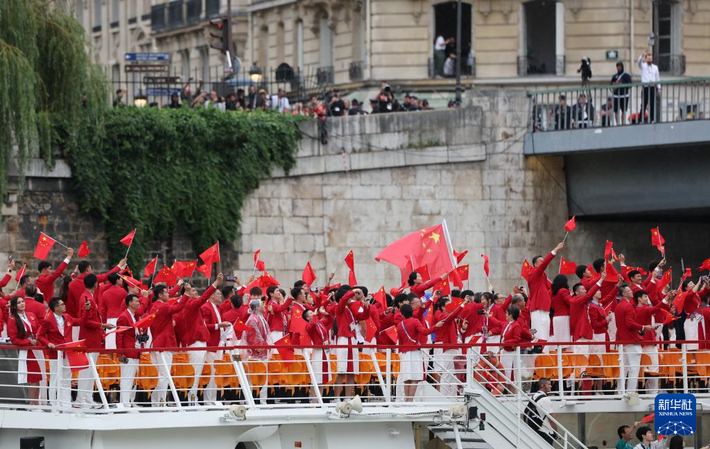 7月26日,中國體育代表團成員在開幕式上。新華社記者 萬象 攝