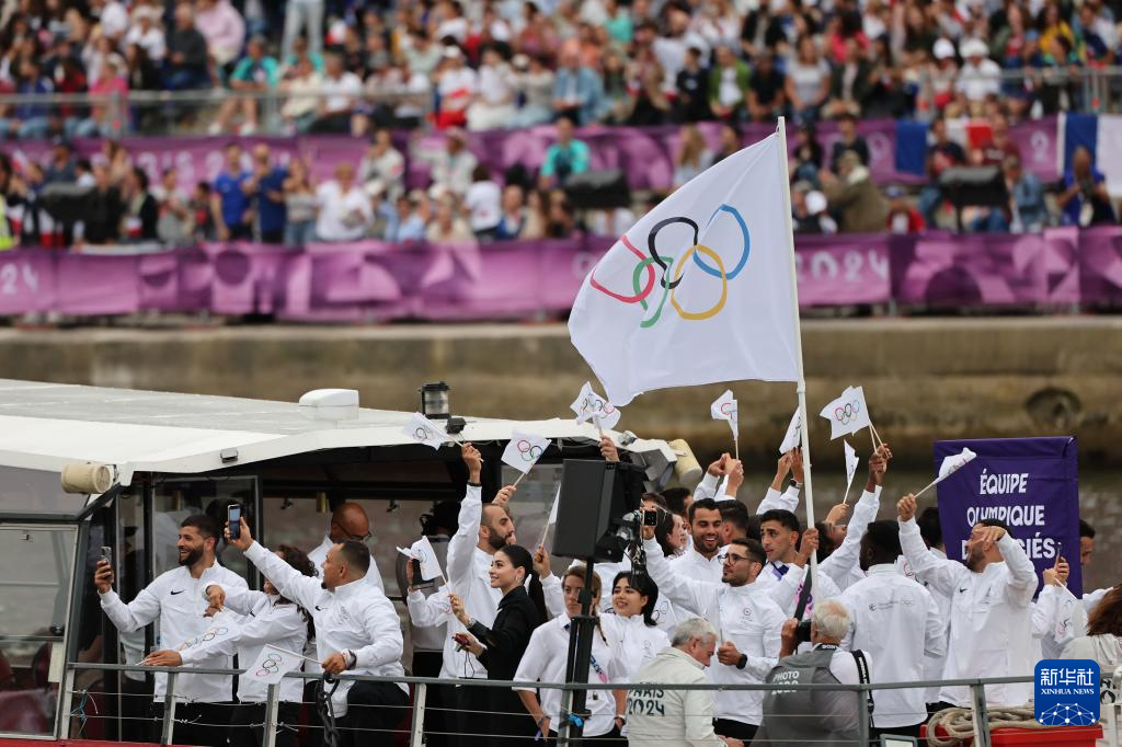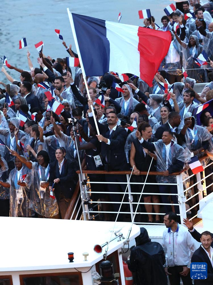 7月26日,法國體育代表團在開幕式上。新華社記者 萬象 攝pagebreak