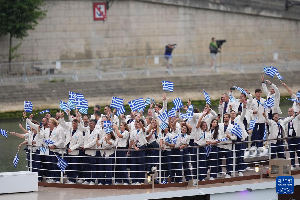 7月26日,希臘體育代表團在開幕式上。新華社記者 陳斌 攝