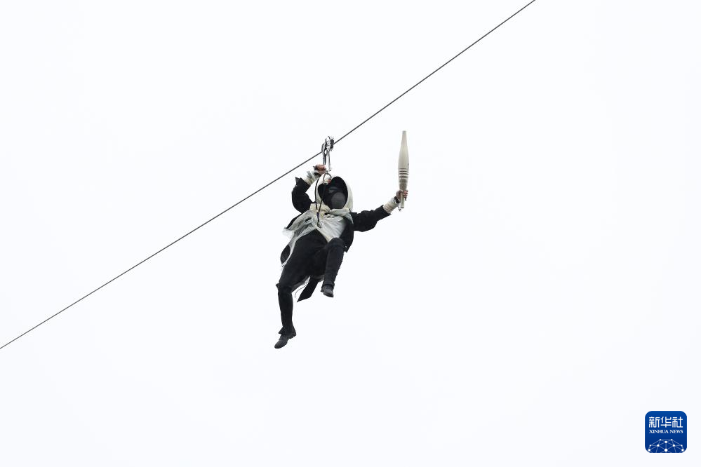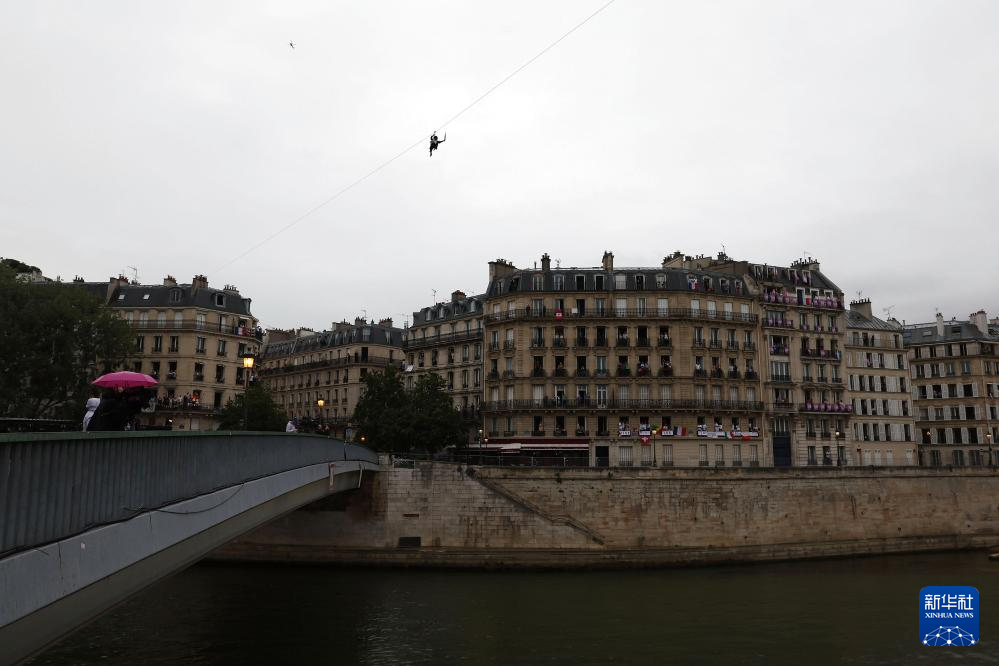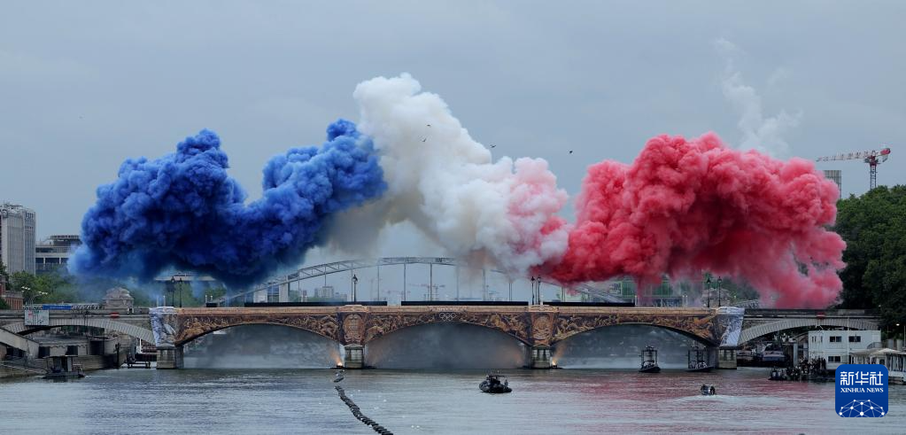 7月26日,開幕式上升起法國國旗。新華社發(fā)(POOL照片/洛伊克·韋南斯)