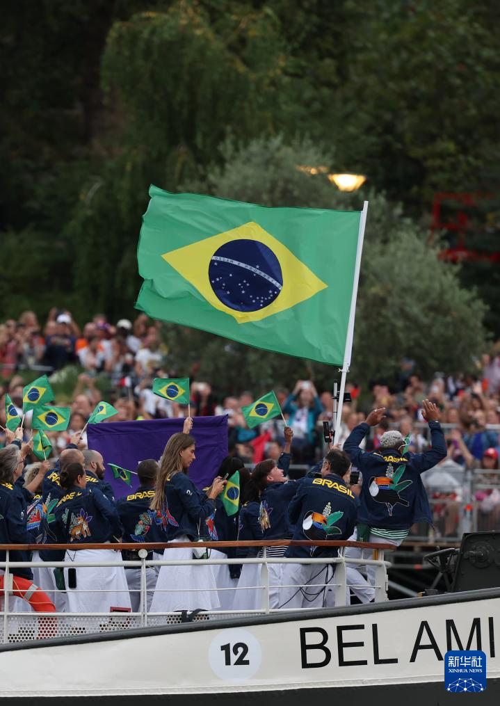 7月26日,巴西體育代表團在開幕式上。新華社發(fā)(POOL照片/卡爾·德索薩)pagebreak