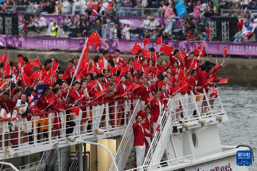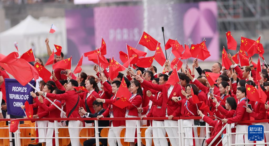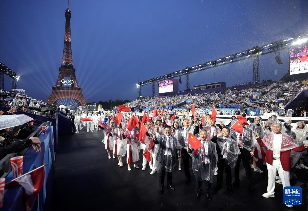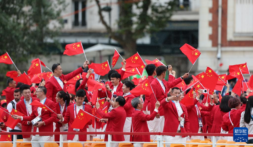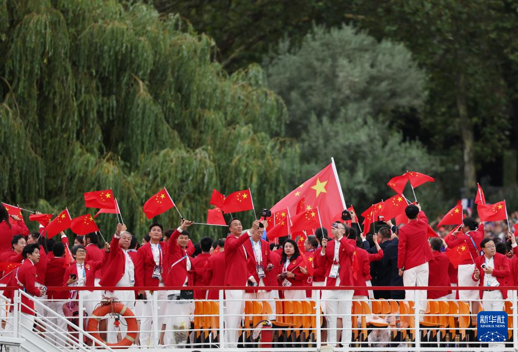 7月26日,中國體育代表團在開幕式上。新華社記者 萬象 攝