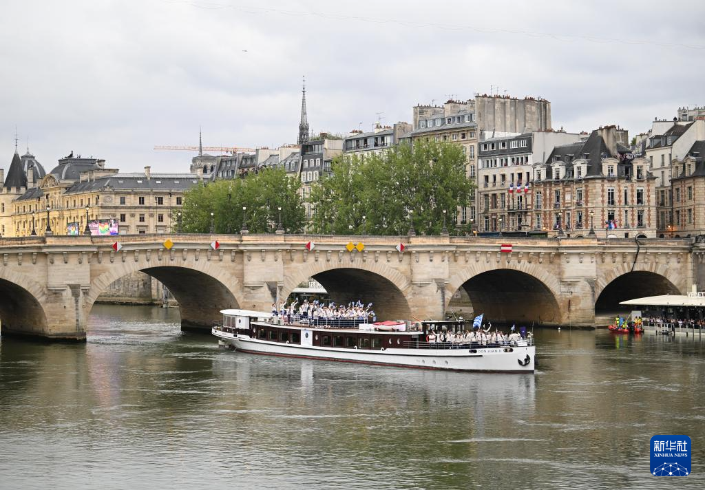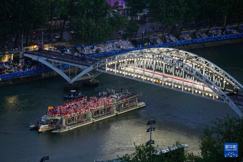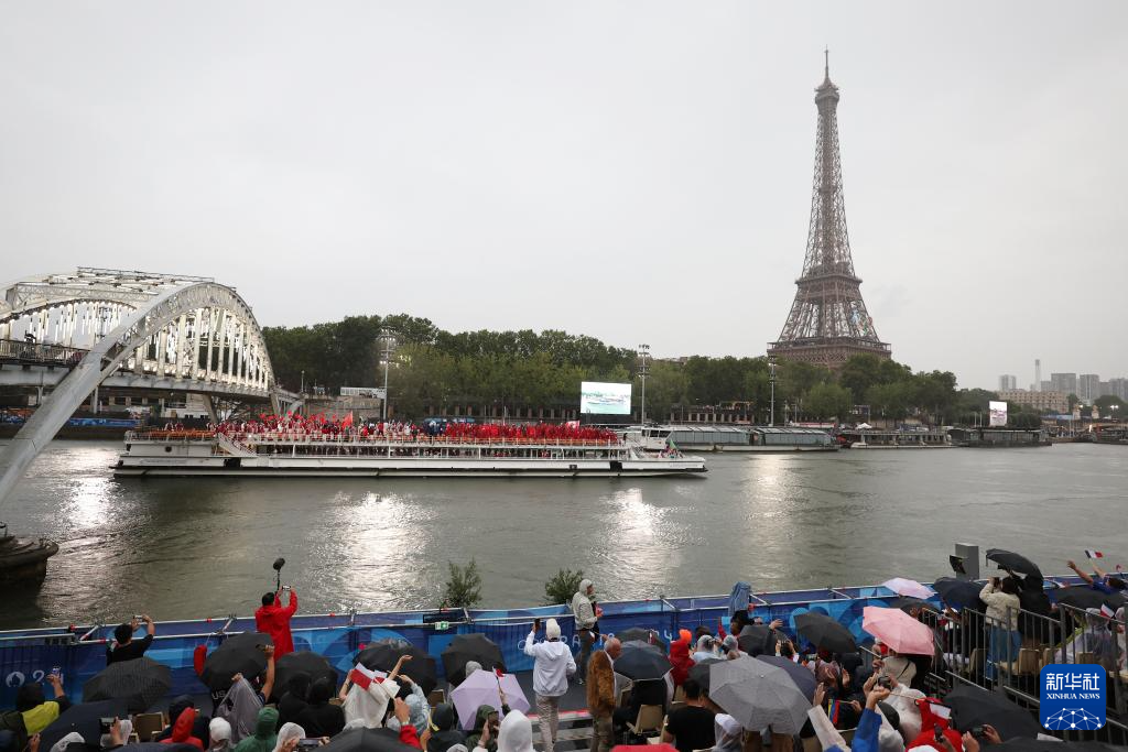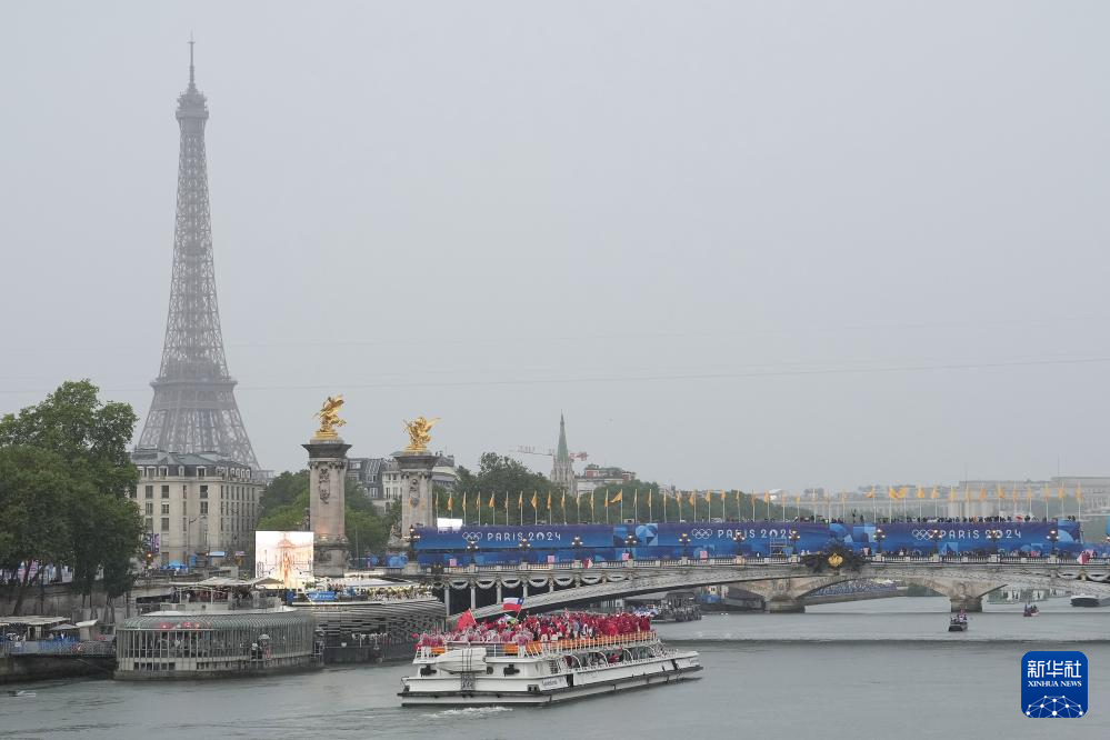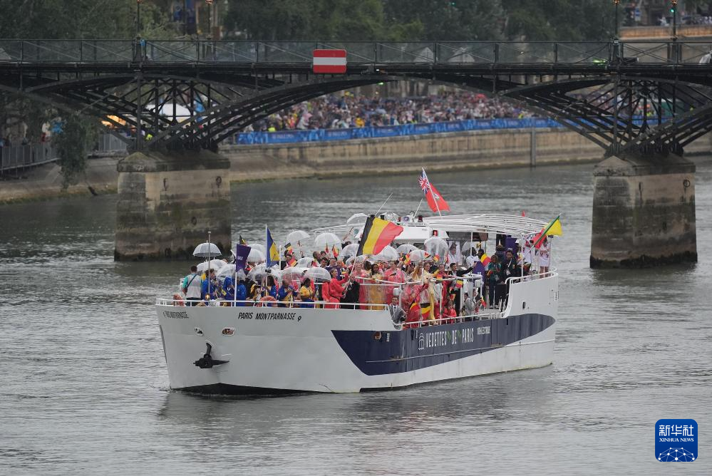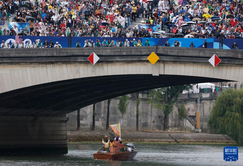 7月26日,各代表團成員在開幕式上抵達耶拿橋。新華社發(fā)(POOL照片/盧多維克·馬林)