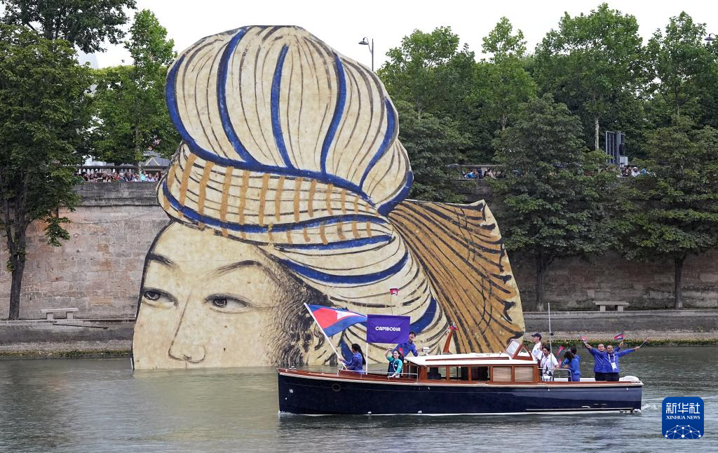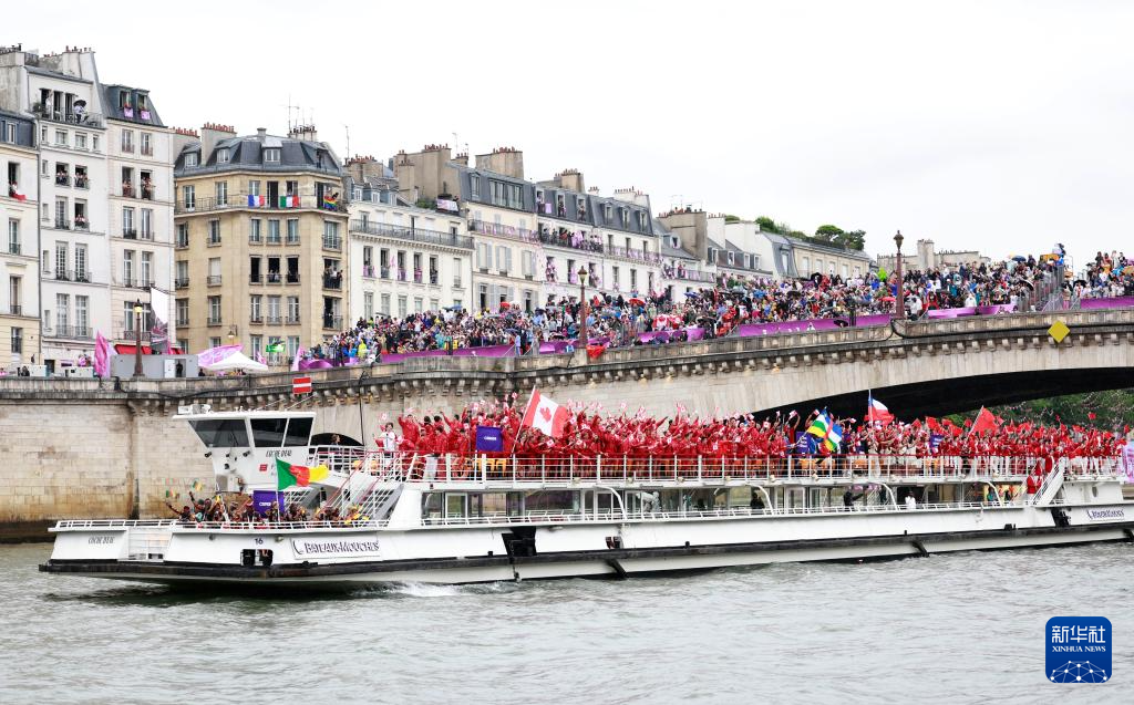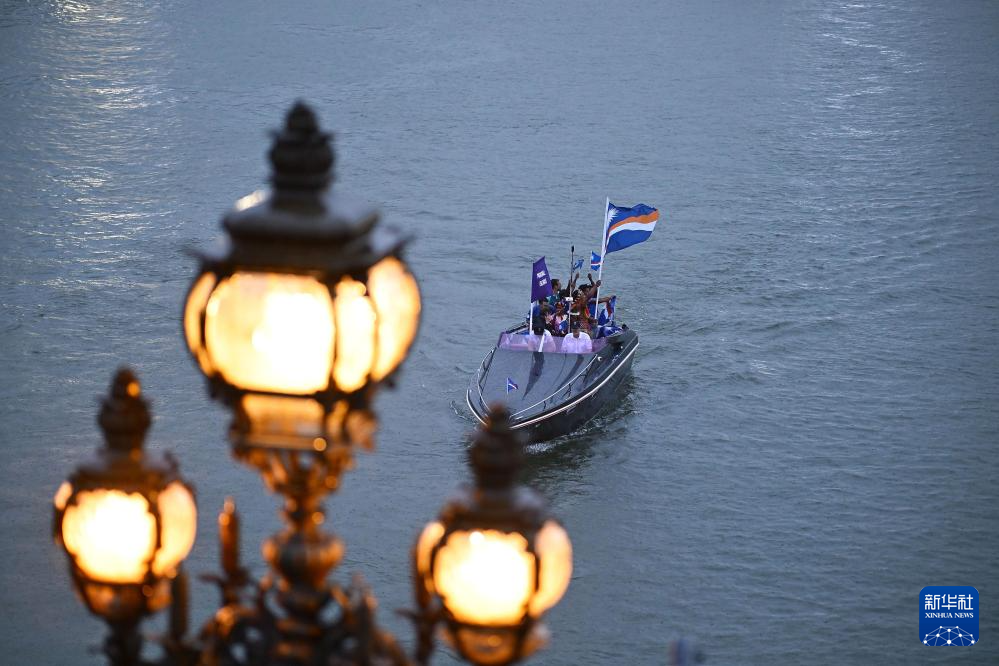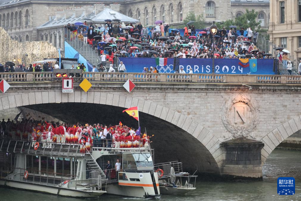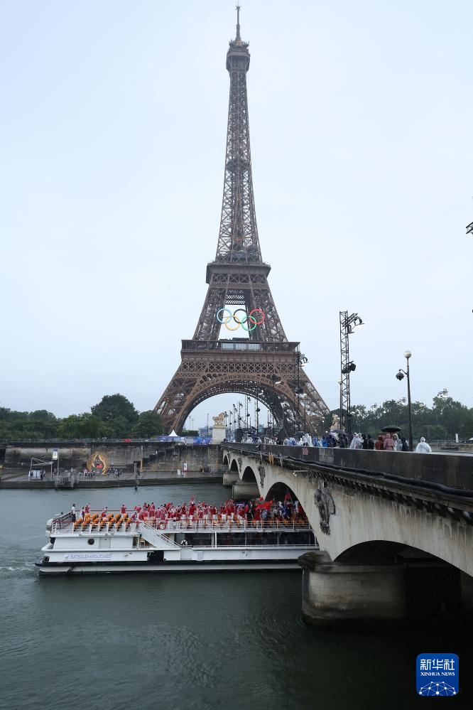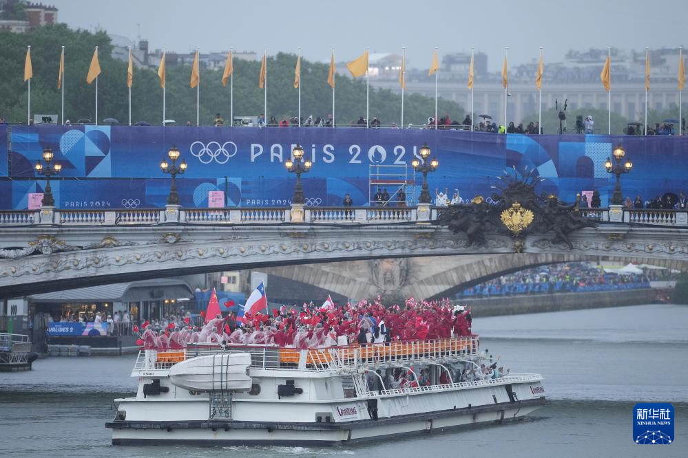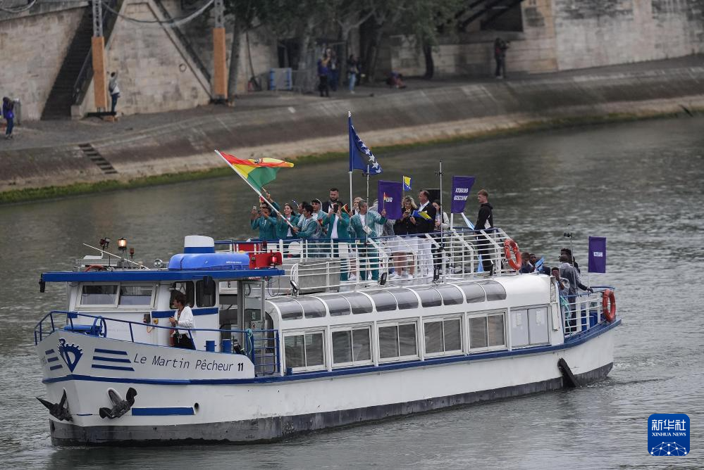 7月26日,各代表團成員在開幕式上抵達耶拿橋。新華社發(fā)(POOL照片/盧多維克·馬林)