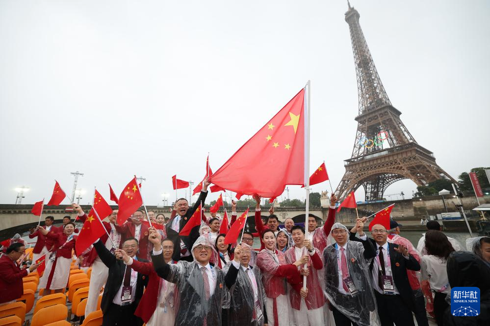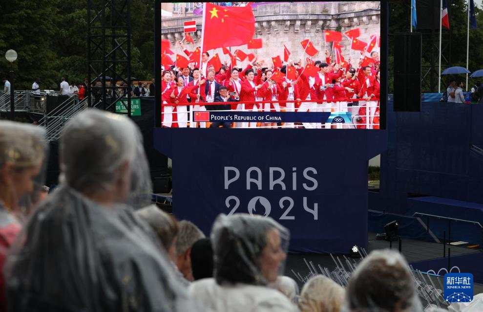 7月26日,中國體育代表團成員在開幕式現場。新華社記者 王毓國 攝