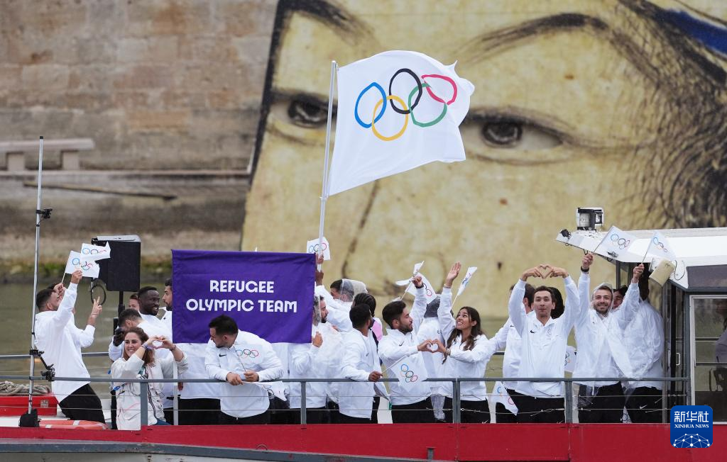 7月26日,難民體育代表團在開幕式上。新華社記者 任正來 攝