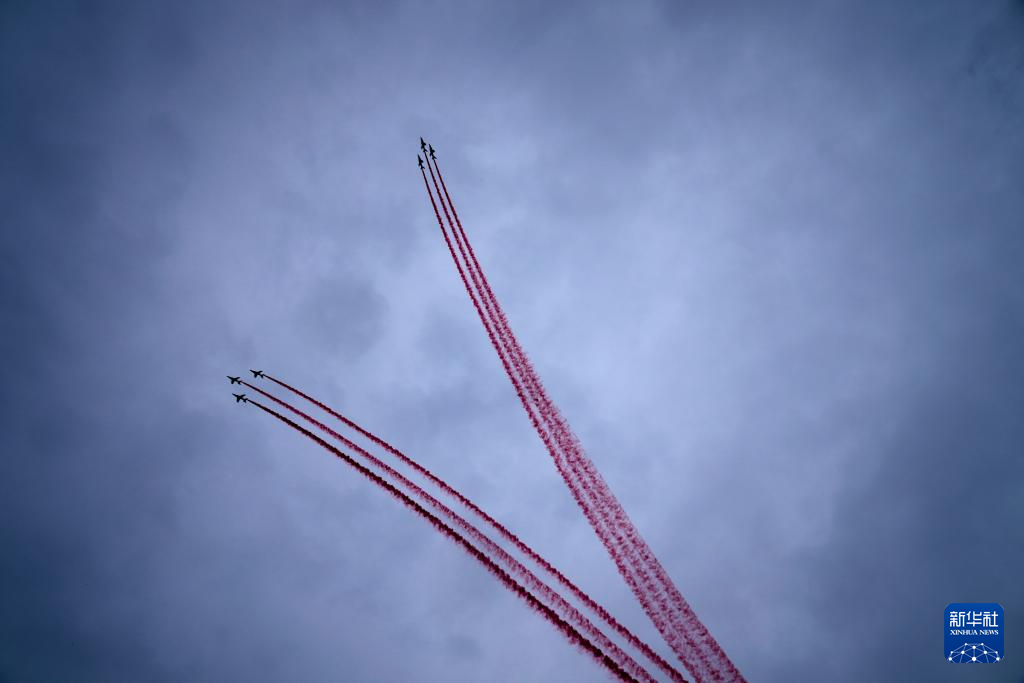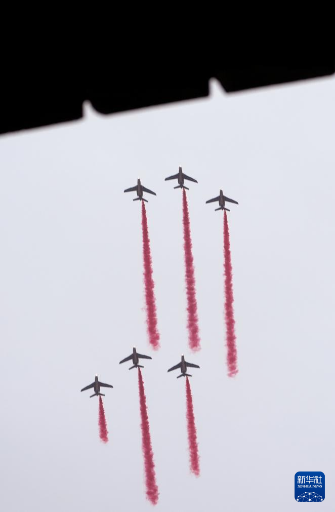 7月26日,飛機在開幕式上表演。新華社發(fā)(POOL照片/艾賈茲·拉希)