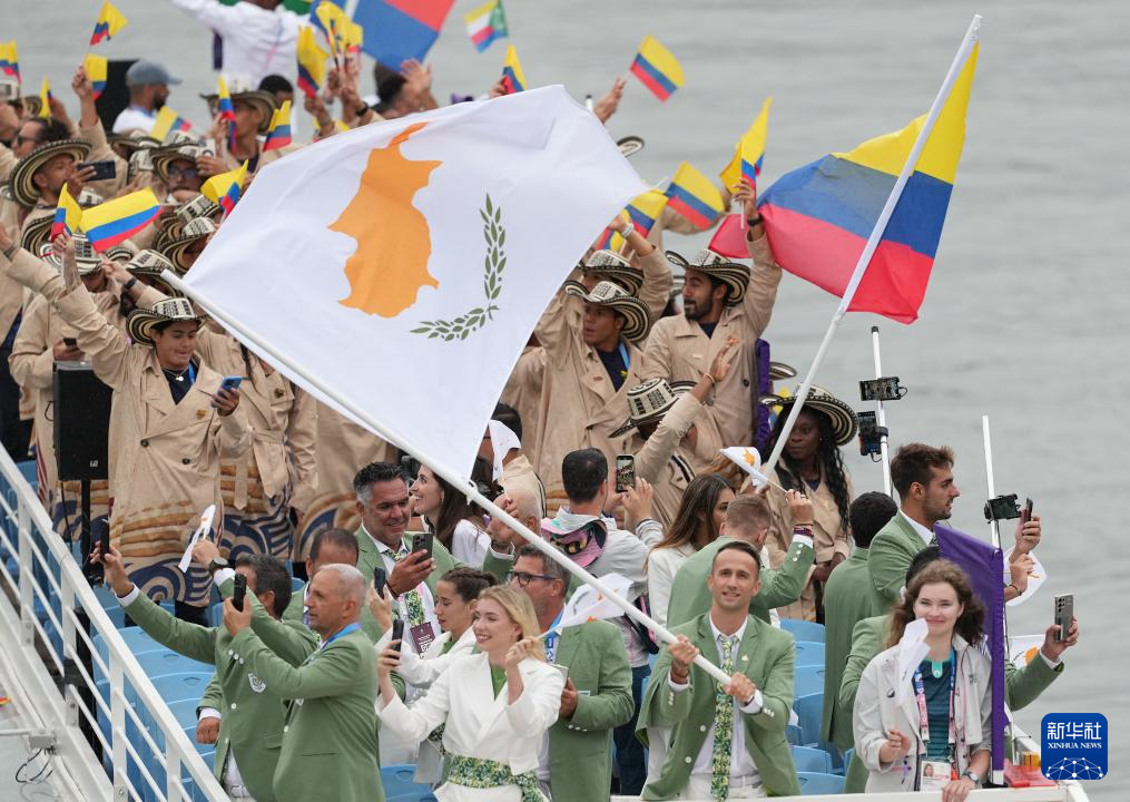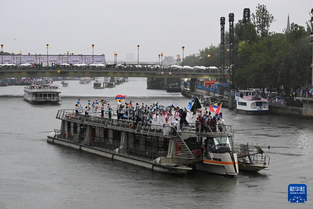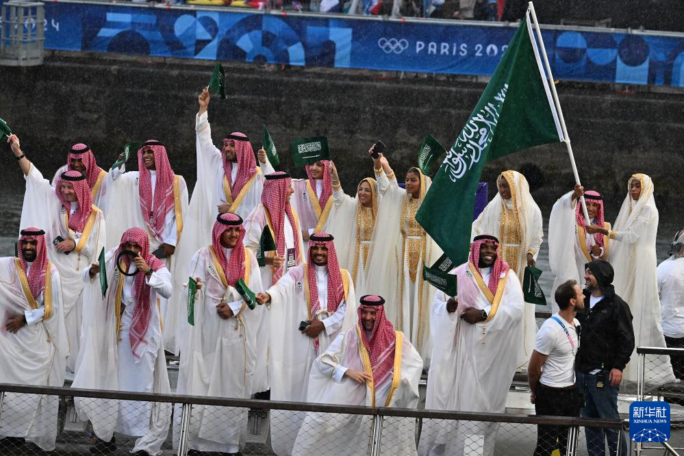 7月26日,安提瓜和巴布達、沙特阿拉伯、阿根廷、亞美尼亞、阿魯巴體育代表團在開幕式上。新華社記者 張玉薇 攝