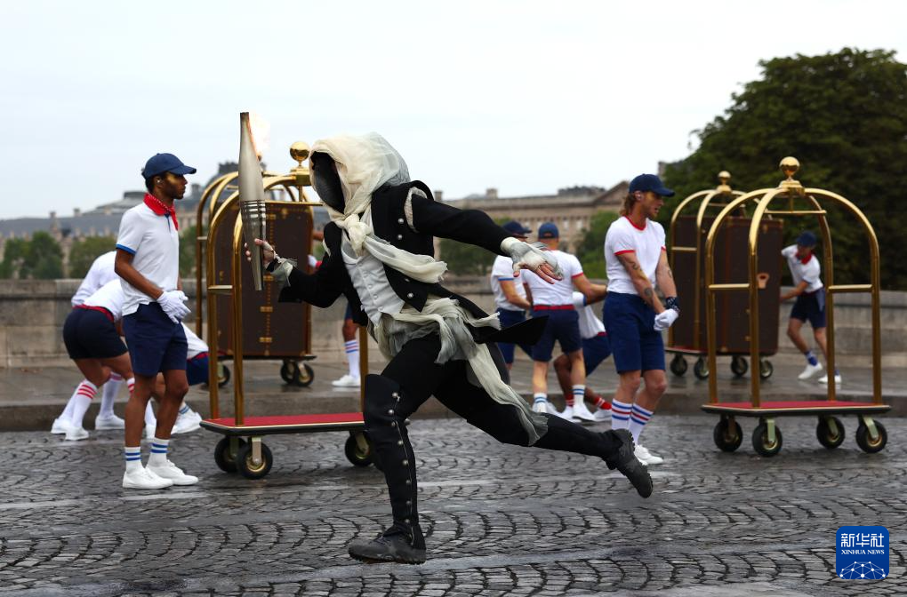 7月26日,一名演員手持火炬在開幕式現場表演。新華社記者 李安 攝