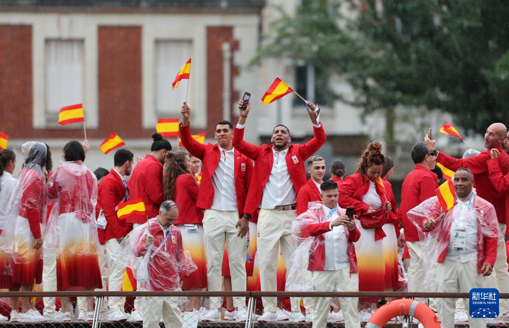 7月26日,各體育代表團在開幕式上。新華社發(fā)(POOL照片/里卡多·毛佐蘭)