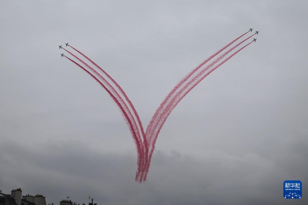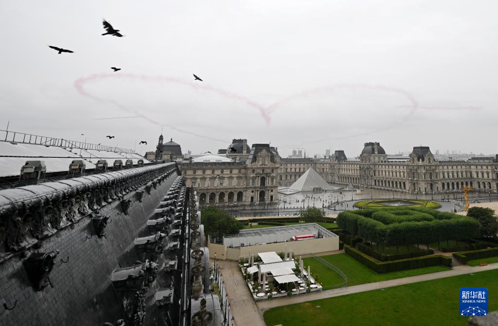 7月26日,飛機在開幕式上表演。新華社發(fā)(POOL照片/克洛達赫·基爾科因)pagebreak